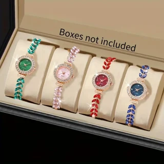 1/4PCS Elegant Women's Wristwatch Set Fashion Rhinestone Bracelet Band Ladies Quartz Watches Reloj Mujer(Without Box)