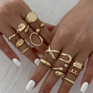 IngeSight.Z 14Pcs/Set Hip Hop Punk Irregular Metal Opening Rings Women Vintage Gold Color Knuckle Joint Ring Party Jewelry Gift