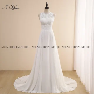 ADLN Jewel Chiffon Beach Wedding Dress Customized Lace Boho Bride Sexy Back Bohemian Gown Custom Made Vestidos de novia