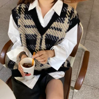 Autumn Winter Men's Mock Neck Knit Sweater Fashion Plaid Knitted Pullovers Men Youthful Vitality Casual Loose Warm Y2K Sweaters