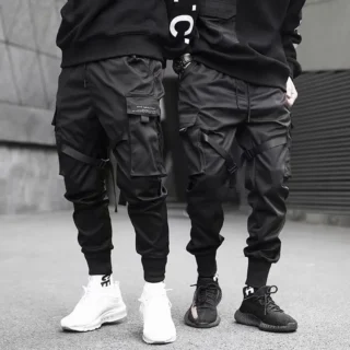 2025 Men's Multi Pocket Bandage Tactical Technical Clothing Work Pants Men's Harajuku Punk Hip Hop Running Pants Casual Street W