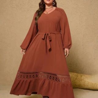 Women Elegant V Neck Long Sleeve Pleated Maxi Dress