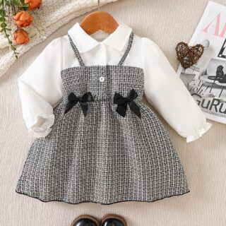 Girls' Toddler Half-Button Shirt Collar Bow Dress, Casual, Ideal for Outdoor Activities, Perfect Gift