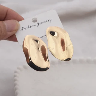 Exaggerated Irregular Big Metal Smooth Wrinkles Drop Earrings Unique Design Gold Color Ear Jewelry New Year Gift