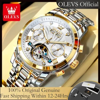 OLEVS 7088 Luxury Automatic Mechanical Watches for Men Skeleton Flywheel Calendar Week Business Man Watch Hollowed Men's Watches