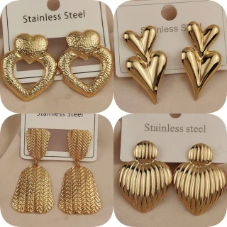 Charming heavy metal love 18K gold-plated women's earrings, waterproof and non-fading stainless steel, wife gift