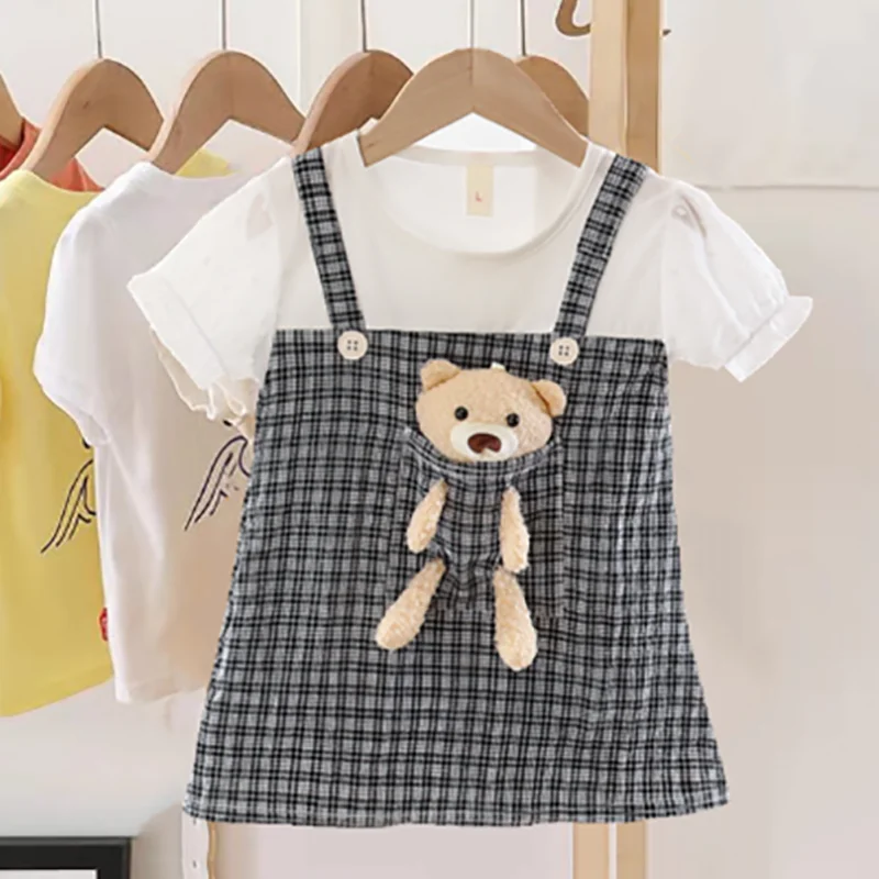 New Baby Girl Dress Cartoon Bow Suspenders Casual Dress Summer Princess Birthday Party Dress Kid Clothes Girl Children Set A1184