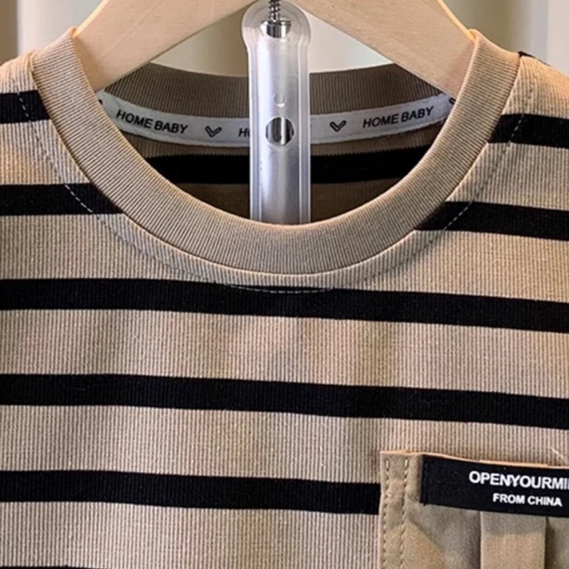 0-5 years old Boys’ summer outfit set Summer short sleeved shorts New children’s striped baby two-piece set