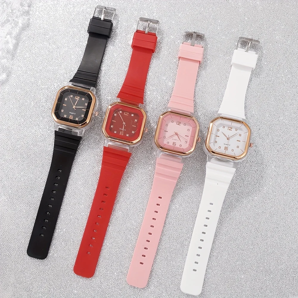 1/4PCS Fashion Square Women Quartz Watches Casual Silicone Band Ladies Quartz Wristwatch Reloj Mujer Girls Clock(Without Box)