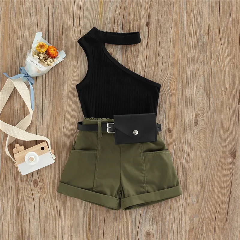 Infant Girl Tanks Tops + Shorts + Waist Bag, Pockets Clothing