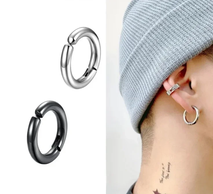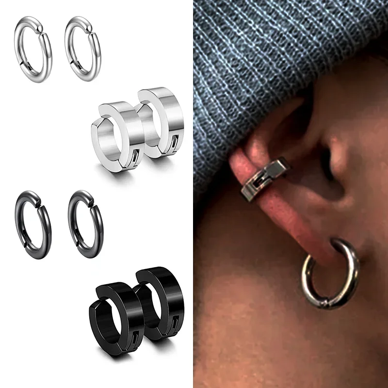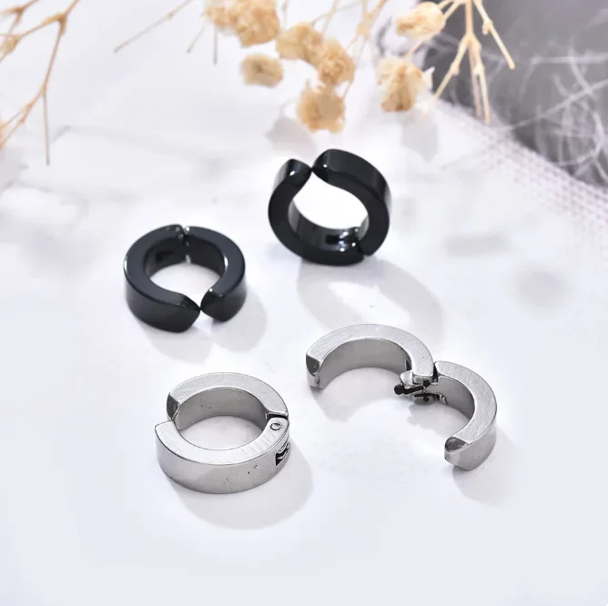1 pairs Popular Ear Clip Earrings for Men/Women Stainless Steel Painless Punk Black Non-Piercing Fake Cartilage Earring Jewelry