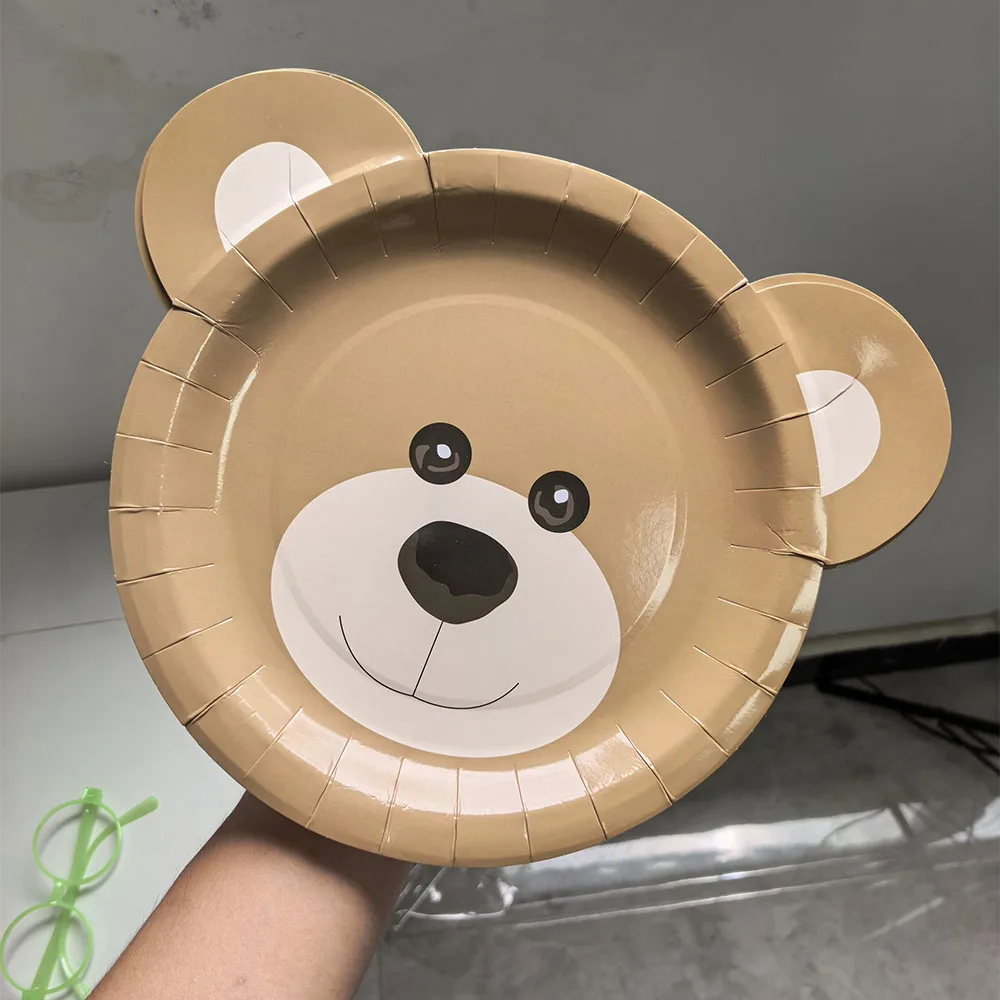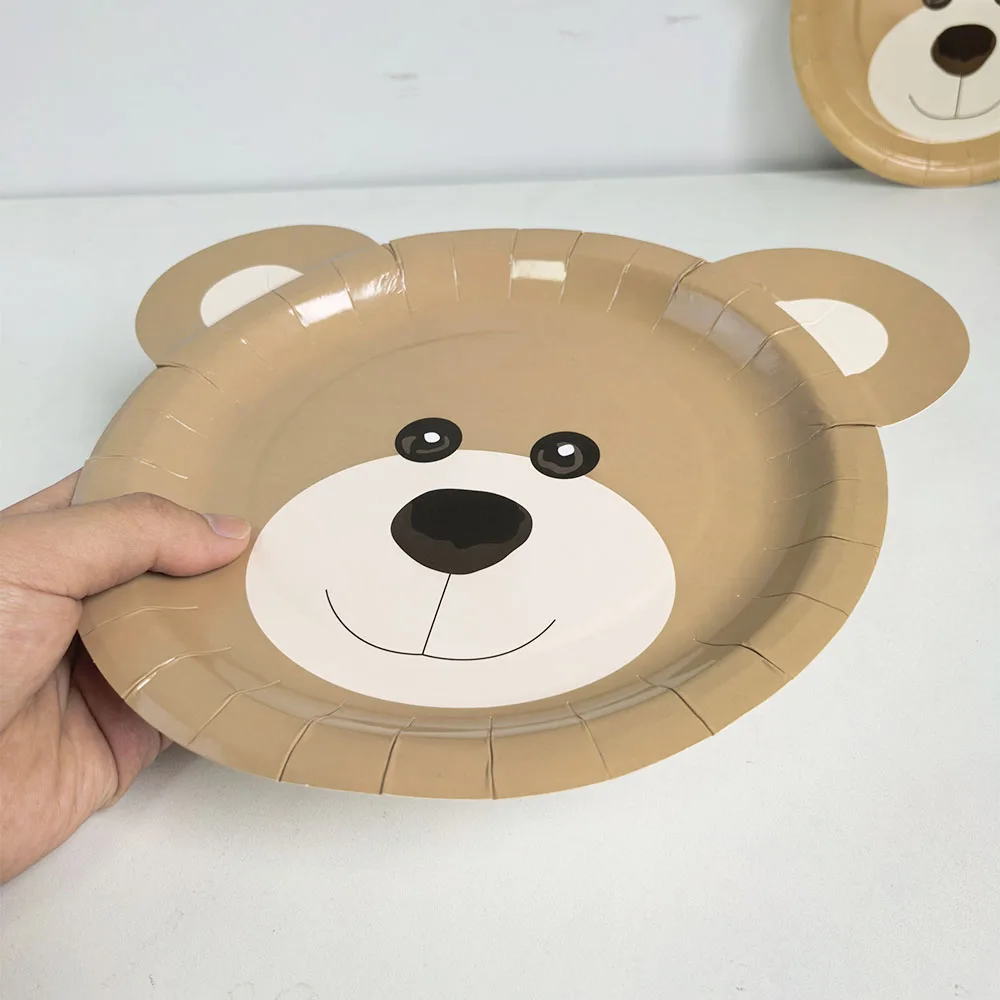 10/50pcs Brown Bear Shaped Disposable Plates 7''and 9'' Cute Bear Theme Party Tableware Kids Birthday Baby Shower Decor Supplies
