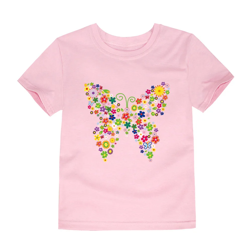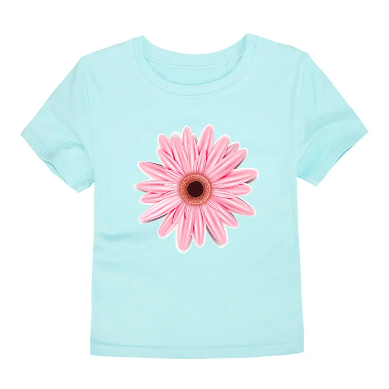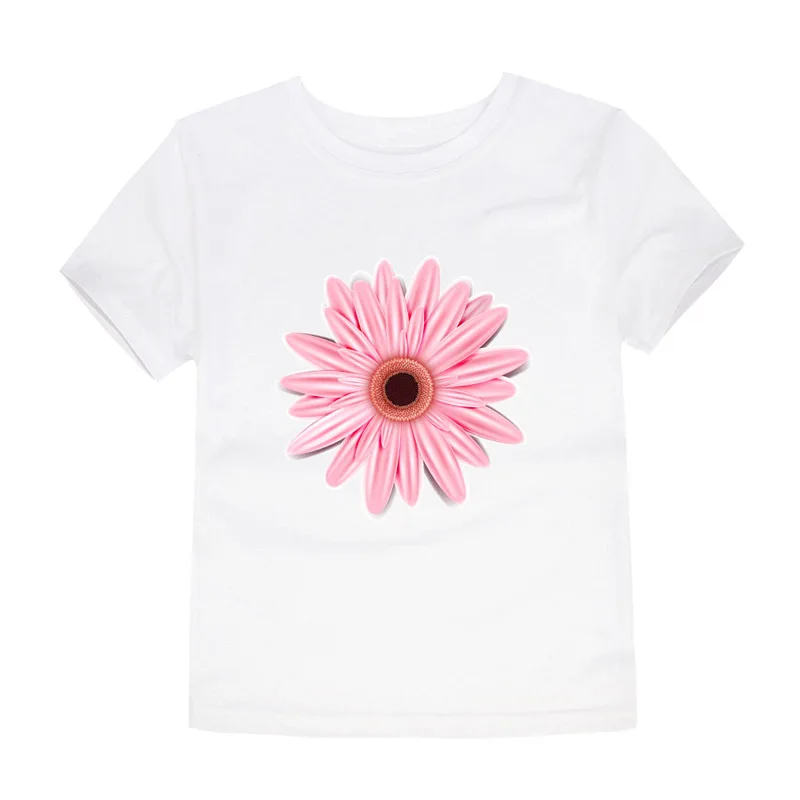 100% Cotton Toddler Girl T Shirt 2 to 3 4 5 6 7 8 9 10 11 12 13 14 Years Pink White Tshirt Flower Print Teenage Girls Tee Shirts