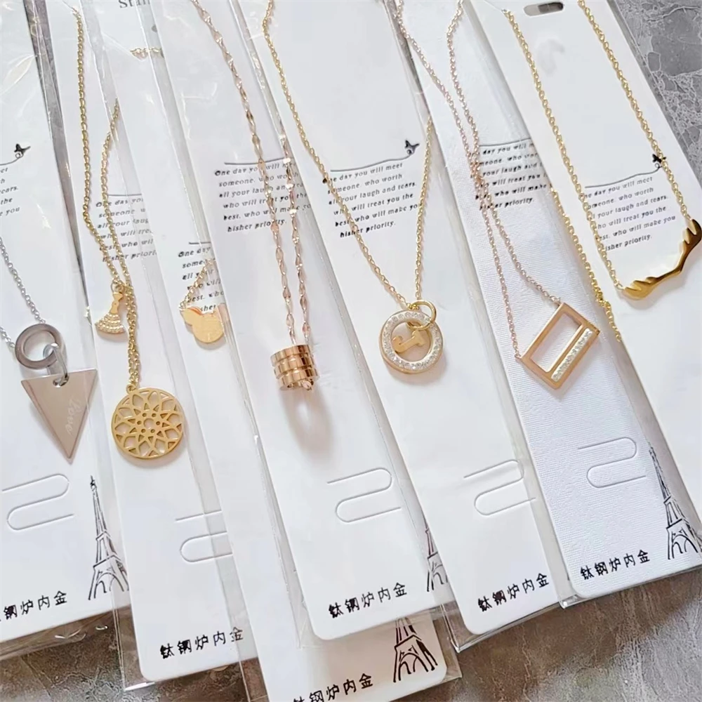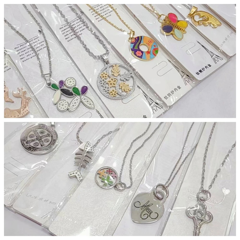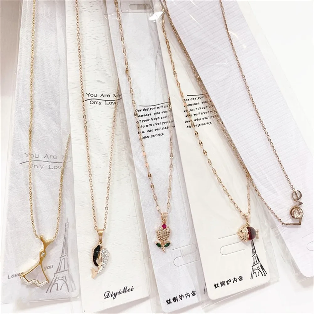 10Pcs/Lot Korean Style Crystal Flower Love Leaf Geometric Pendant Stainless Steel Necklace for Women Girls Jewelry Party Gifts