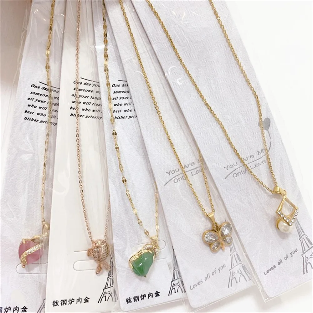 10Pcs/Lot Korean Style Crystal Flower Love Leaf Geometric Pendant Stainless Steel Necklace