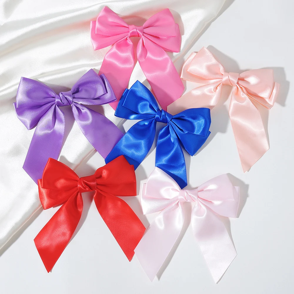 1PCS Silk Bows Children Texture Hair Clip Classic Solid Colours Bowknots Hairpin Baby Boutique Hair Accessories Kids Party Gifts