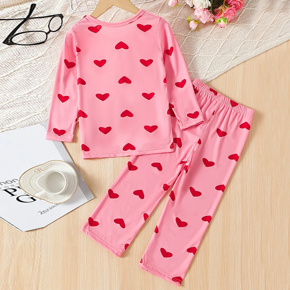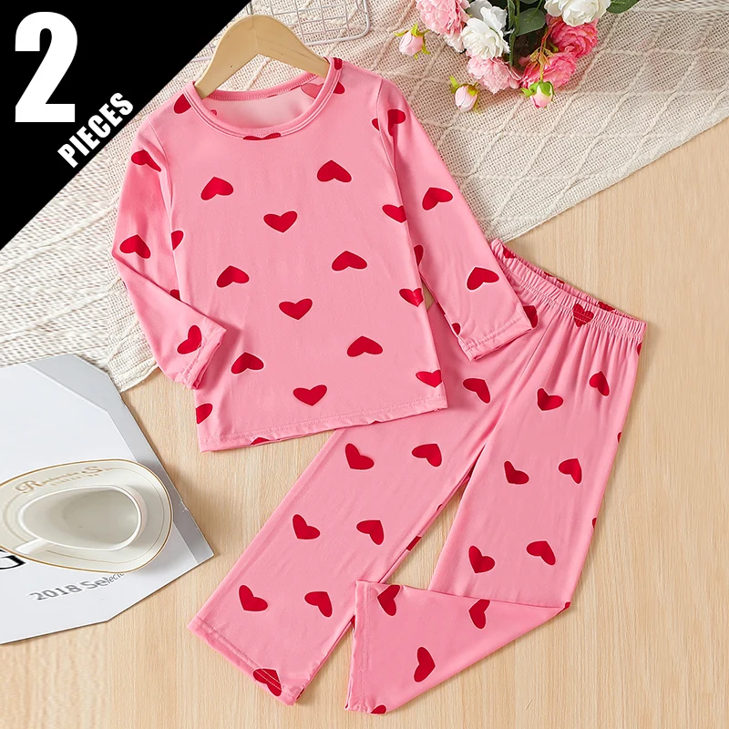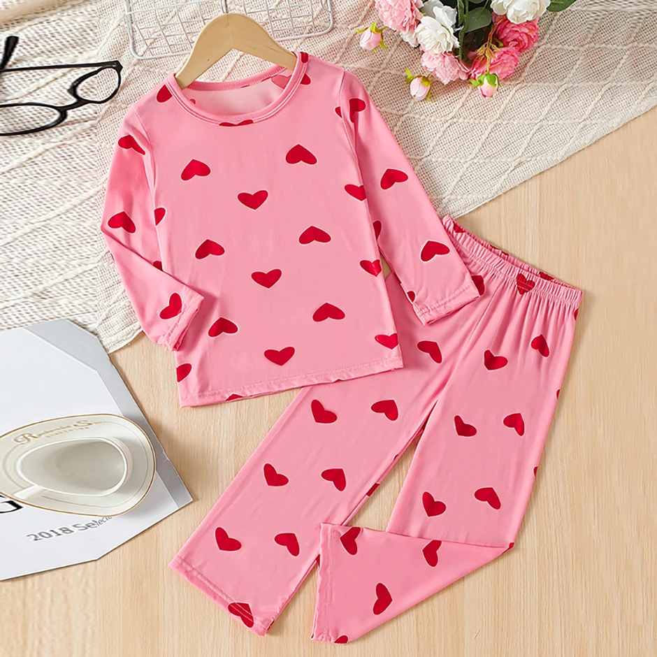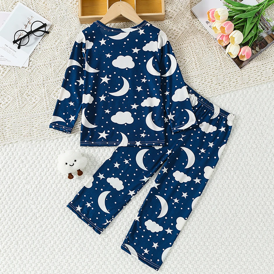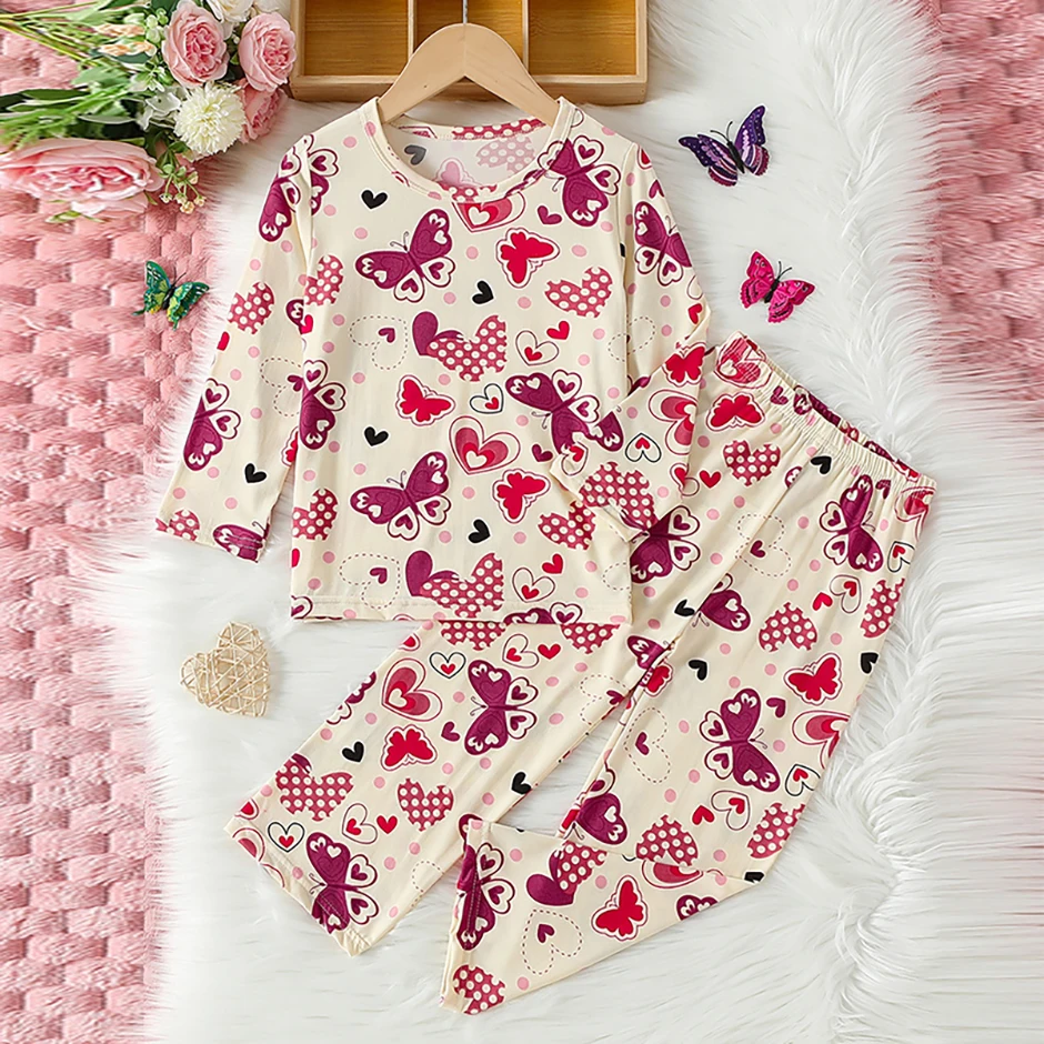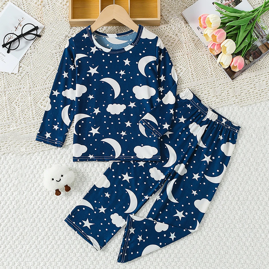 2-piece Autumn And Winter Children’s Cute Printed Long Sleeved Pants Set For Boys And Girls Casual And Comfortable Home Clothes