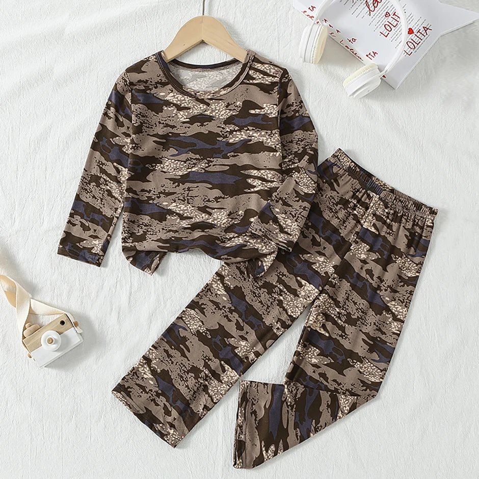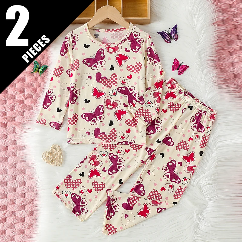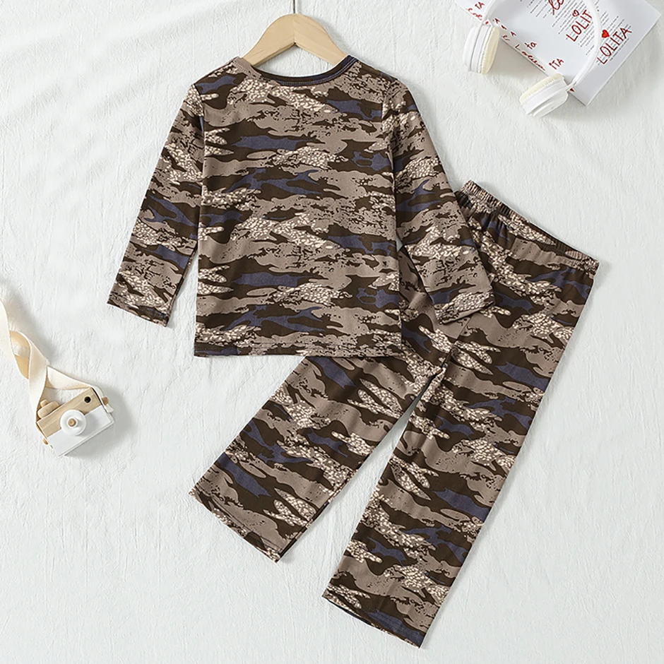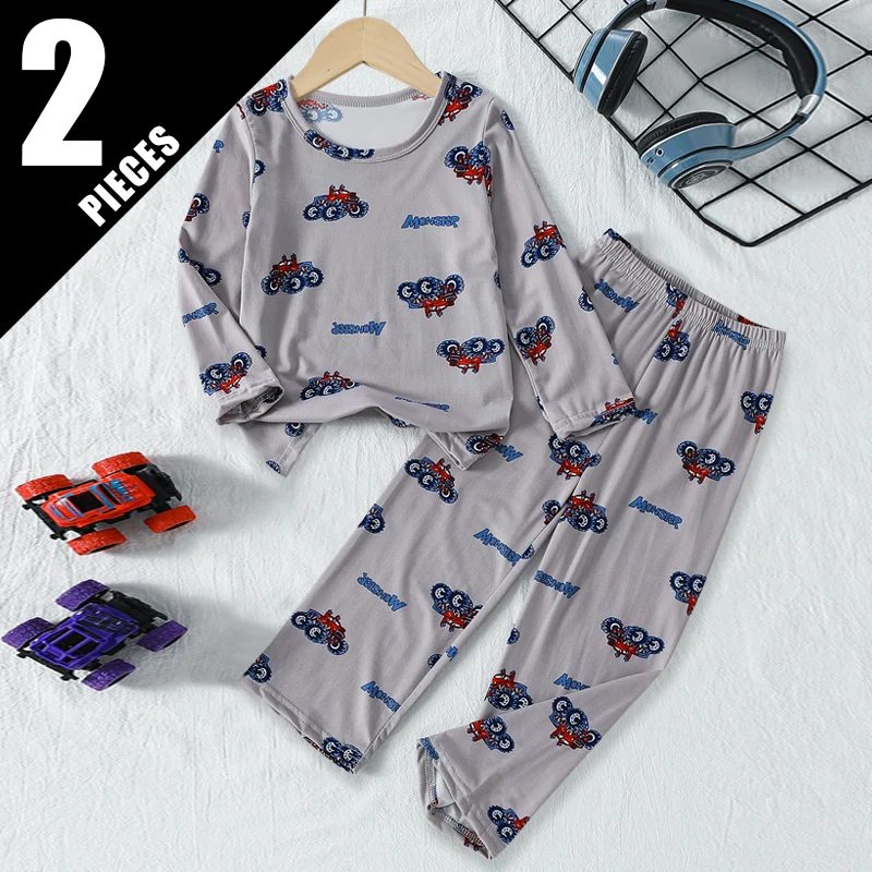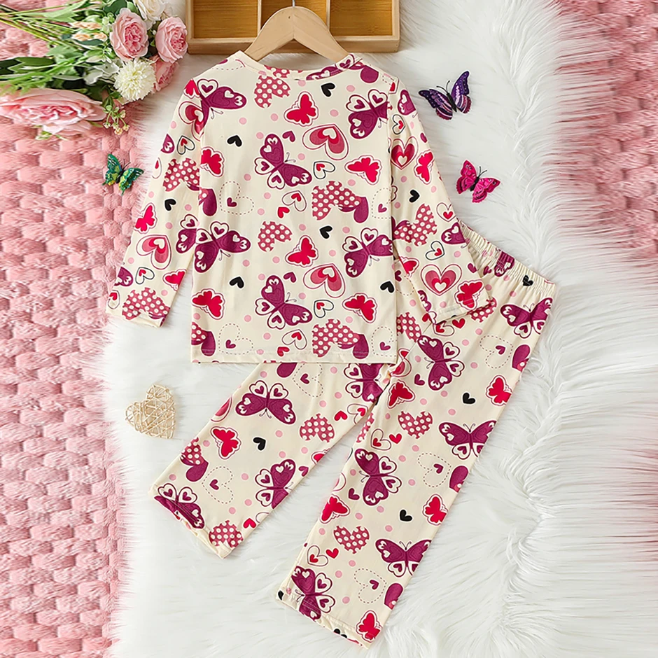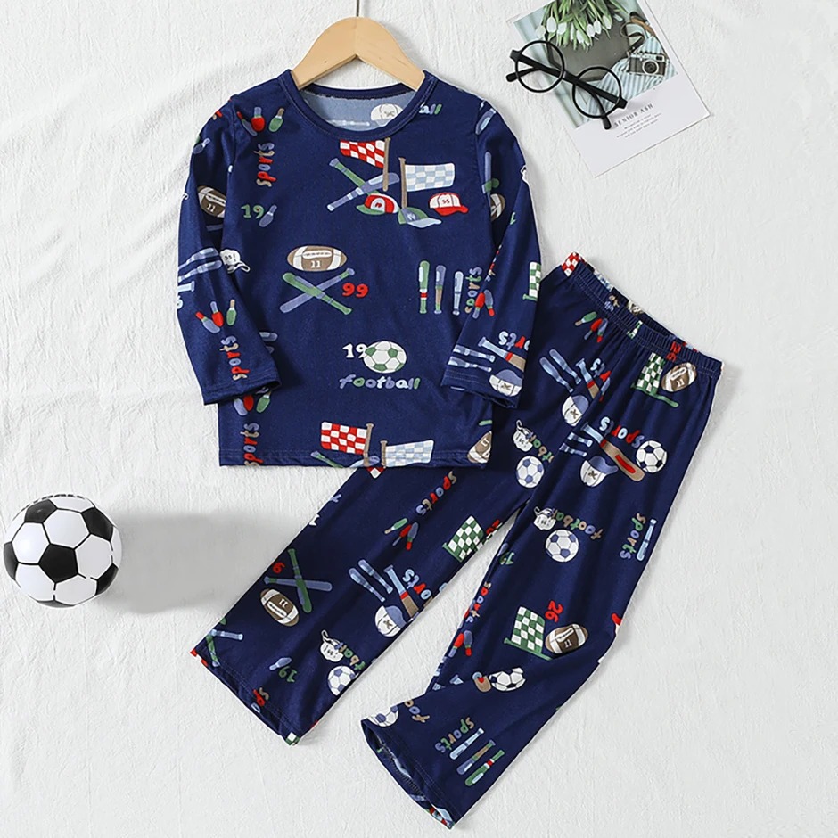 2-piece Autumn And Winter Children’s Cute Printed Long Sleeved Pants Set For Boys And Girls Casual And Comfortable Home Clothes