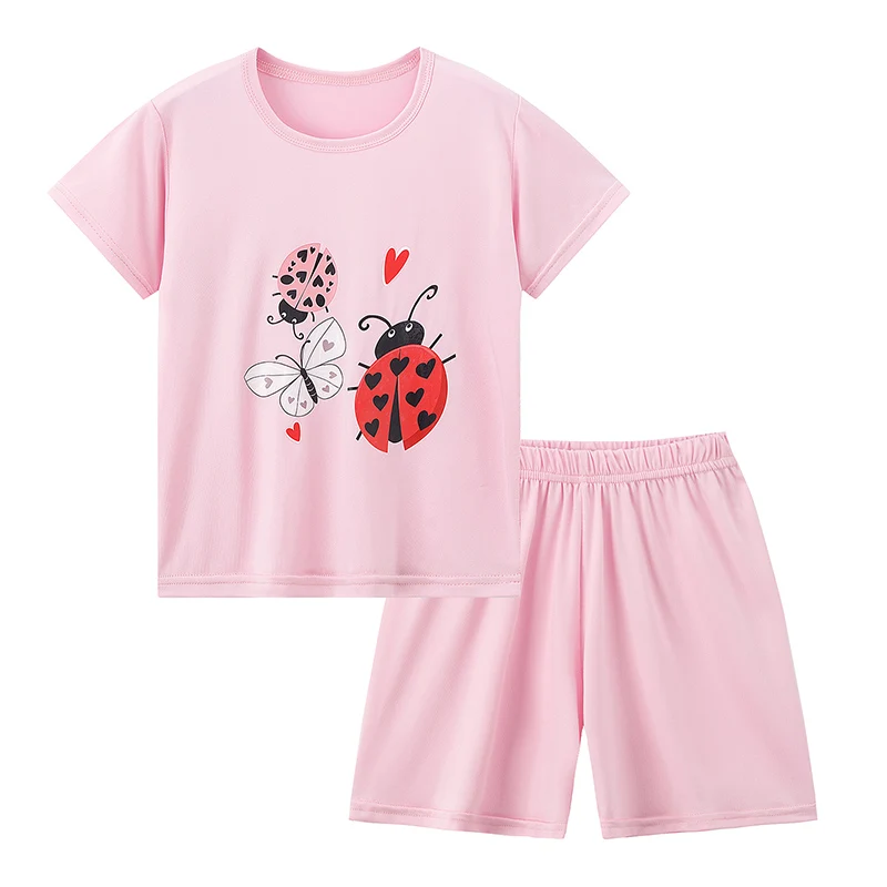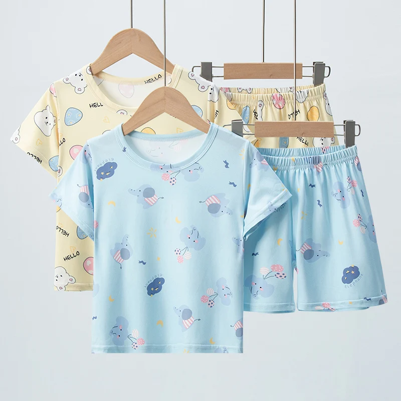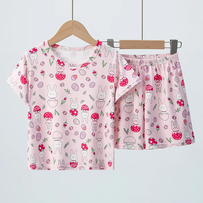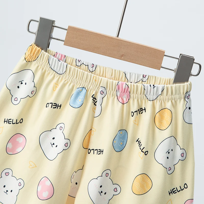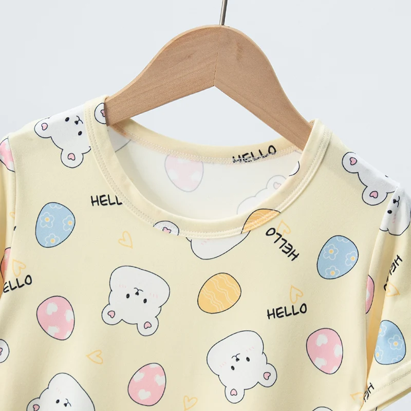 Adorable Children Summer Homewear Sleepwear Sets Breathable Cotton Blend Girls Hot Days Short Sleeve Loungewear with Long Pants