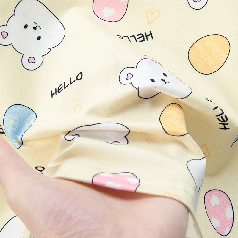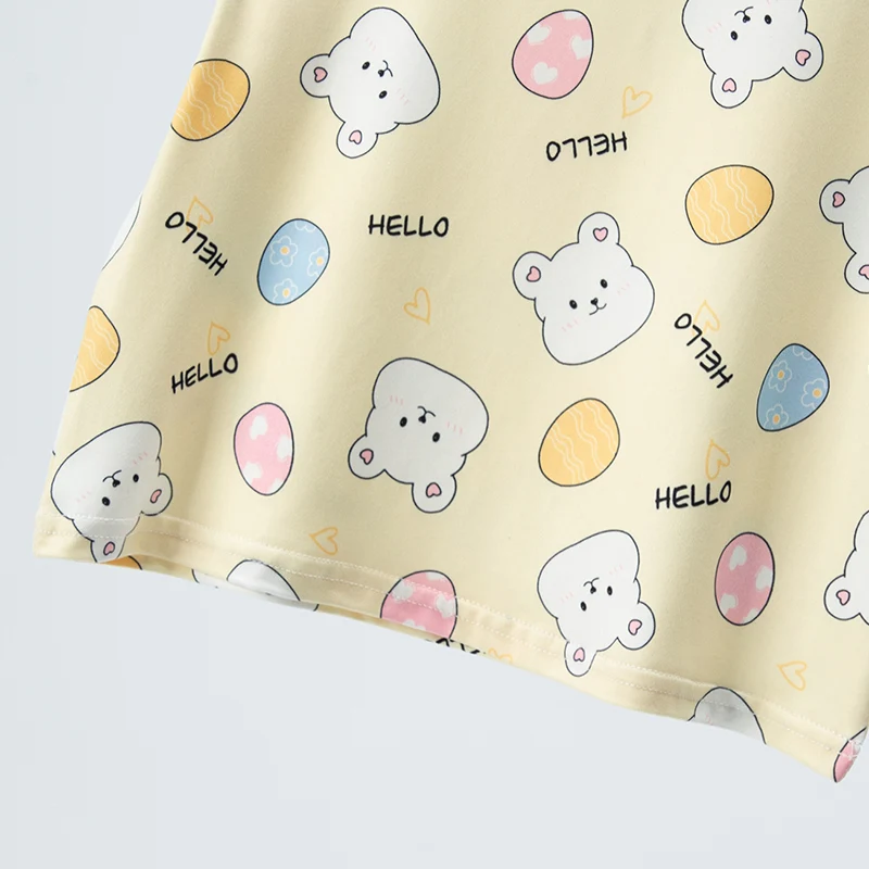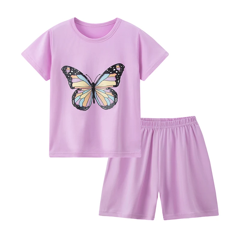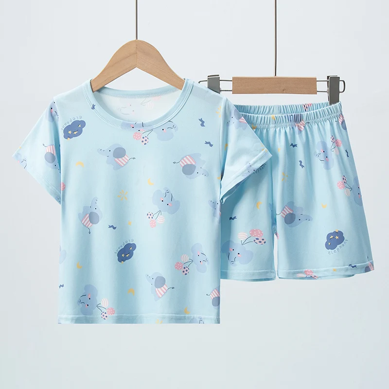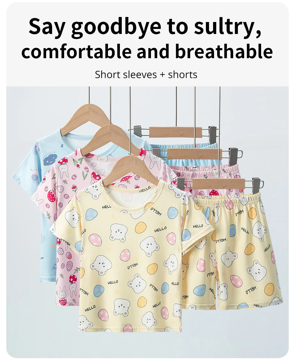 Adorable Children Summer Homewear Sleepwear Sets Breathable Cotton Blend Girls Hot Days Short Sleeve Loungewear with Long Pants