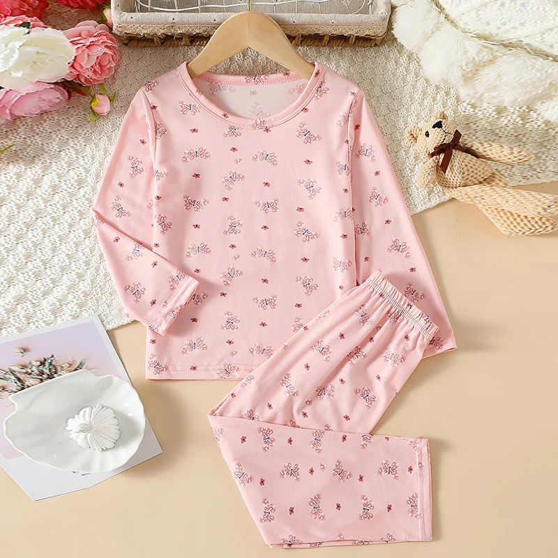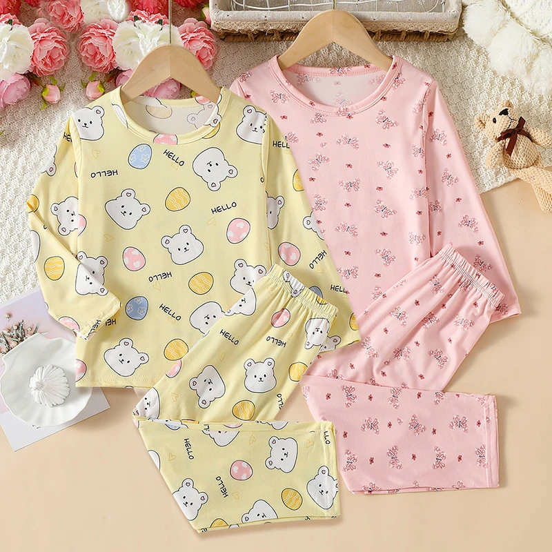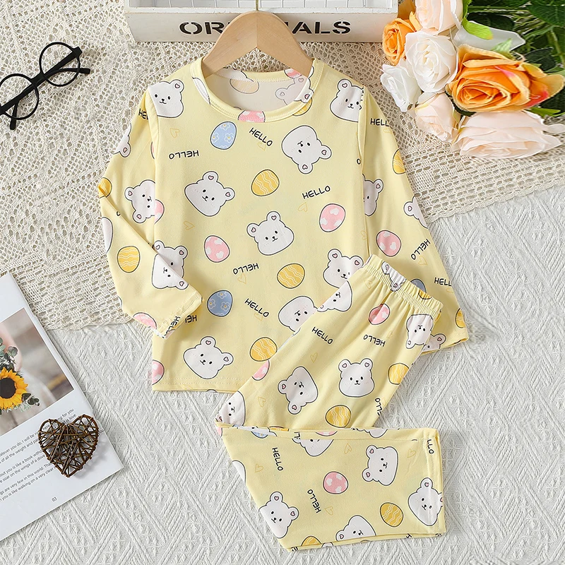 2-piece Autumn And Winter Children’s Cute Printed Long Sleeved Pants Set For Boys And Girls Casual And Comfortable Home Clothes