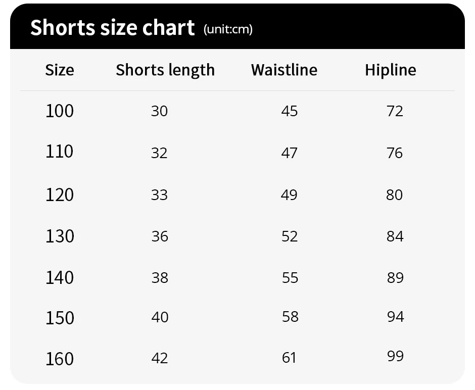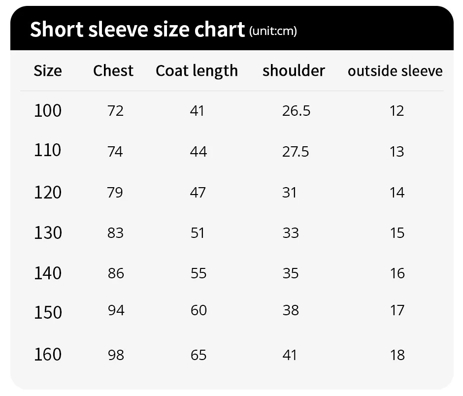 | Kid Size | 100, 140, 110, 130, 120, 150 |