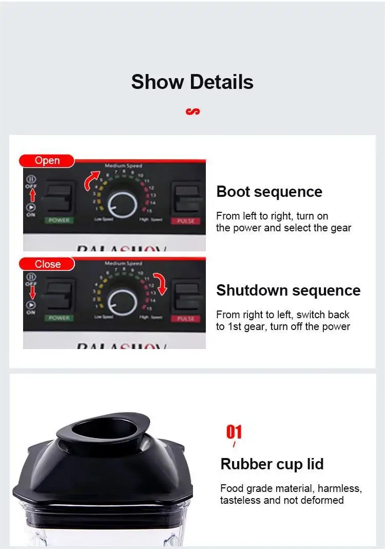 With a power of 2000W, this blender is the perfect companion to prepare delicious sloothies and juices.