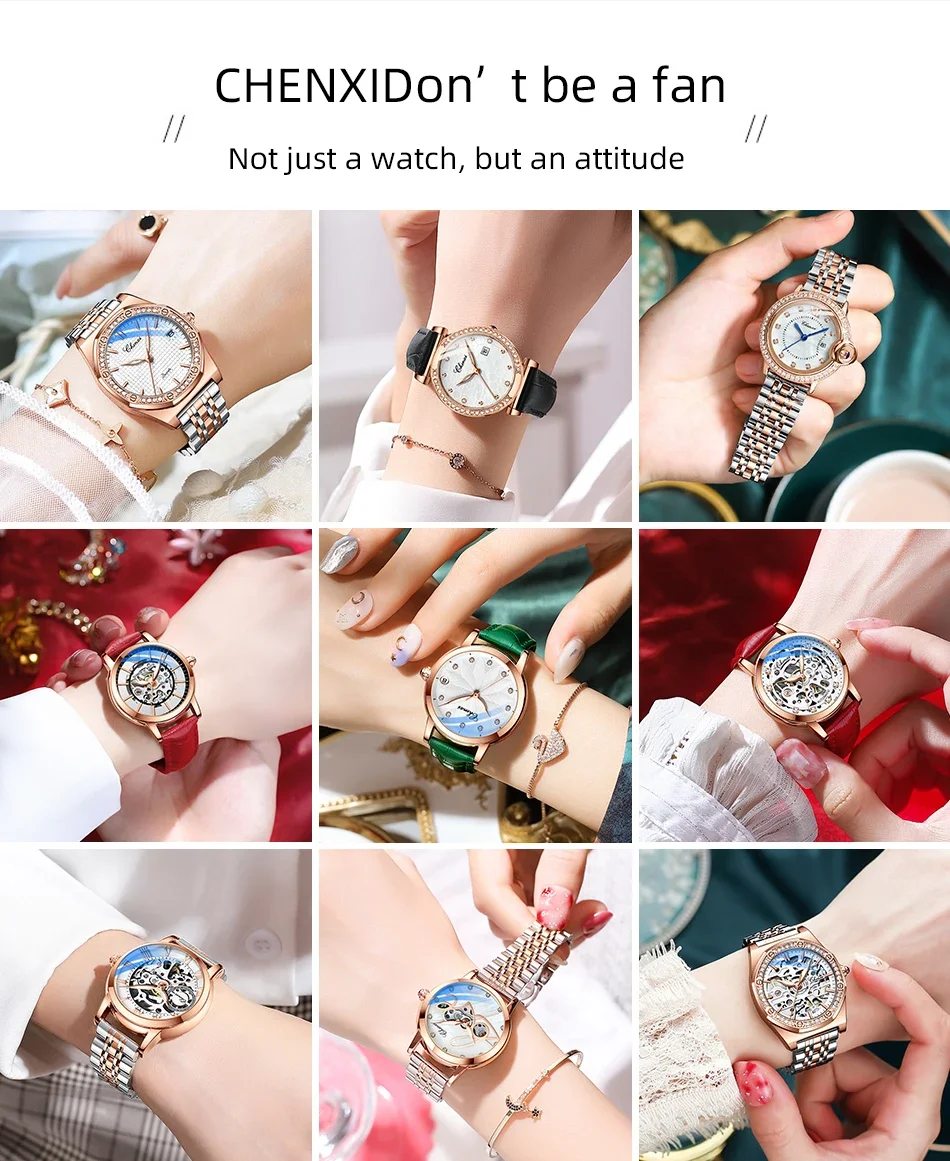 2024 CHENXI 8833 Women Automatic Mechanical Watch Top Brand Luxury Wrist Watch Waterproof Female Leather Business Clock