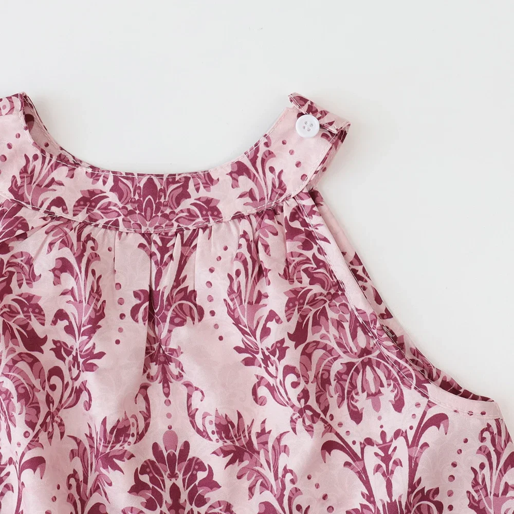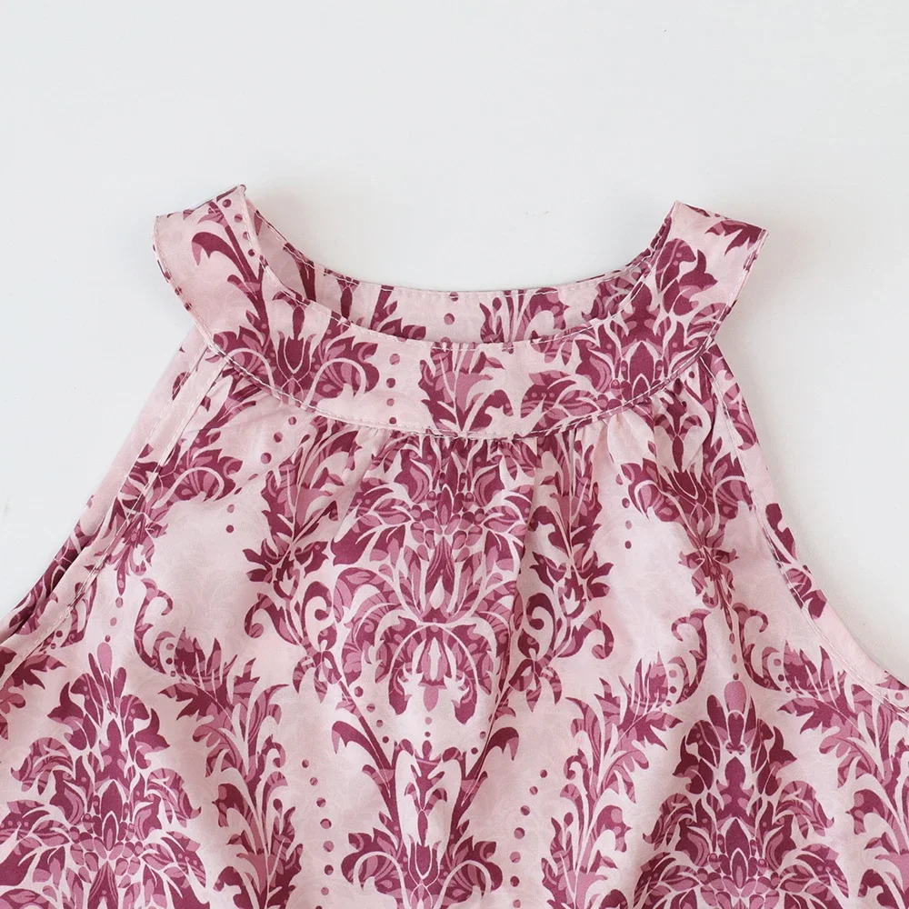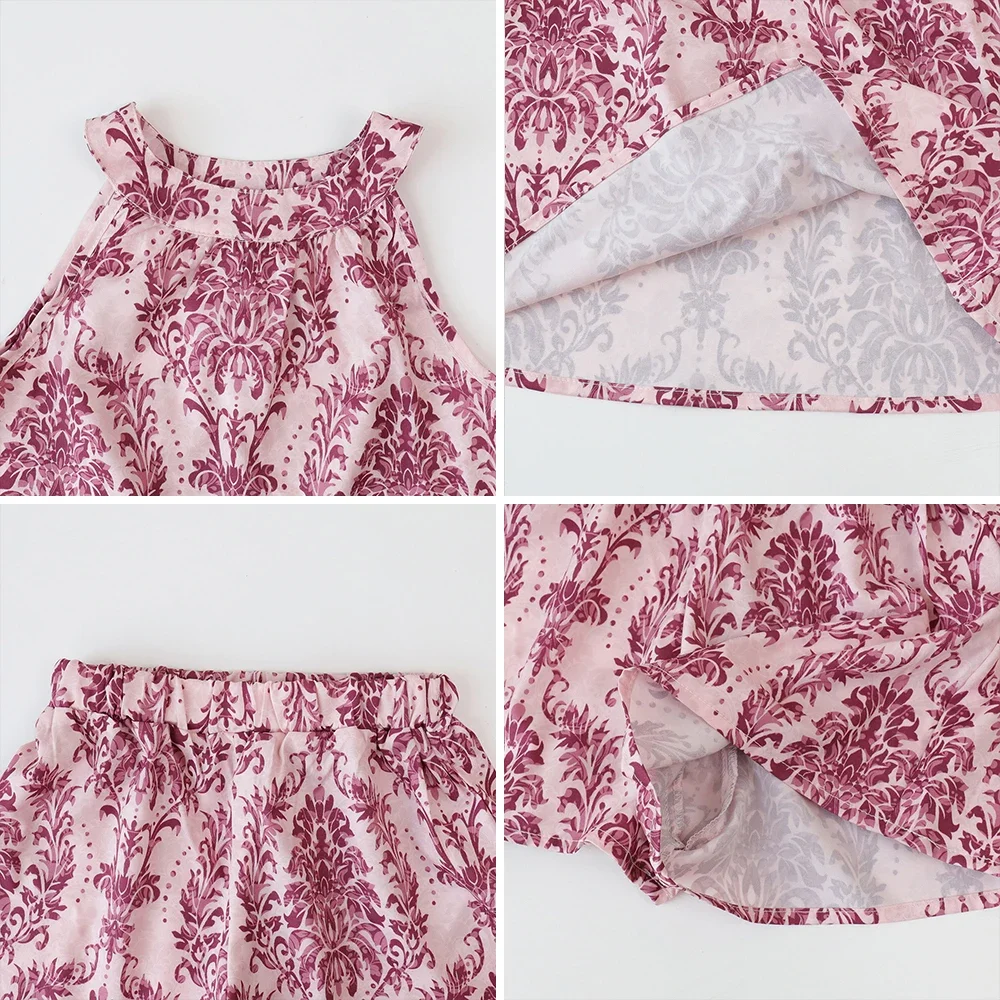 2024 New Girls Outfit Summer Small Floral Halterneck Sleeveless Suspender Set Girl Refreshing Shorts Two-Piece Set