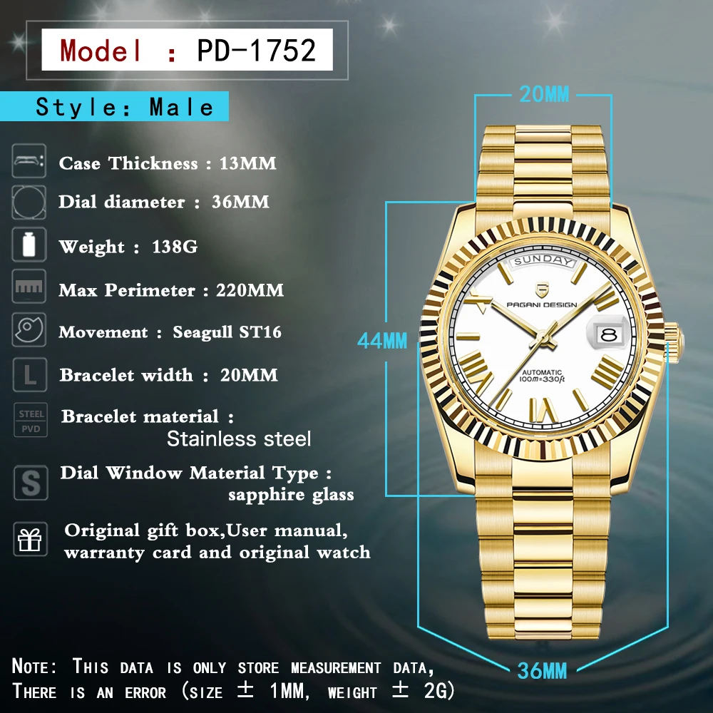 2025 New PAGANI DESIGN DD36 Men’s Watches Gold Luxury Mechanical Wristwatch Date Automatic Watch For Men AR Sapphire Waterproof