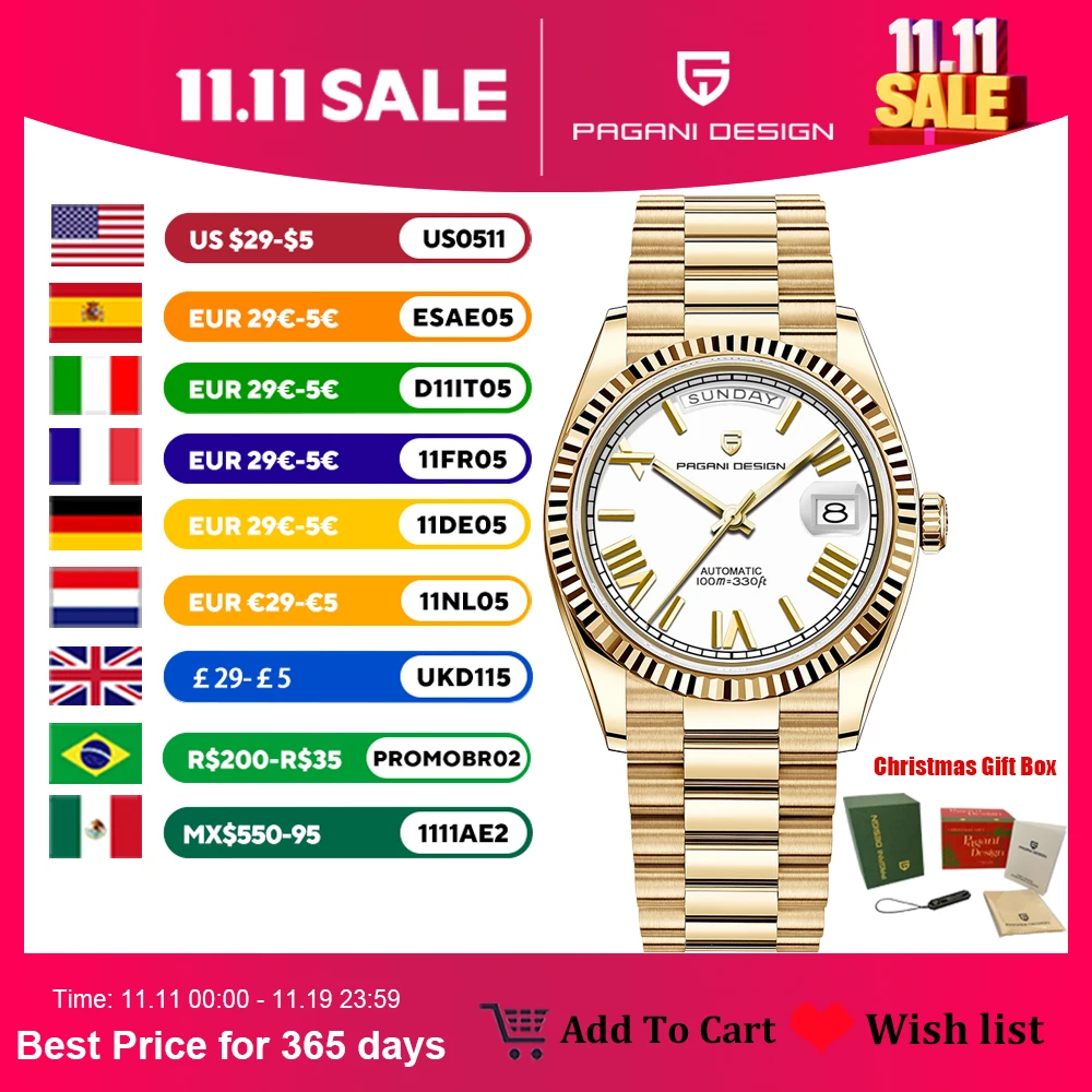 2025 New PAGANI DESIGN DD36 Men’s Watches Gold Luxury Mechanical Wristwatch Date Automatic Watch For Men AR Sapphire Waterproof