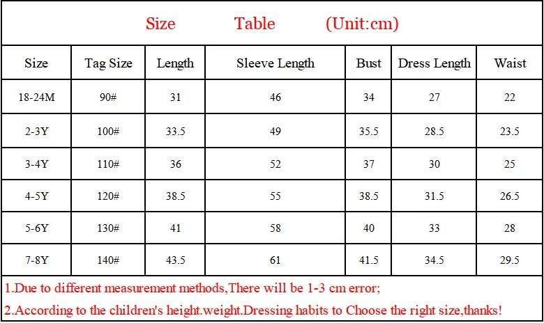 | Kid Size | 7-8Y 140, 5-6Y 130, 4-5Y 120, 3-4Y 110, 2-3Y 100, 18-24M 90 |