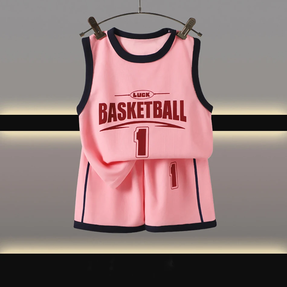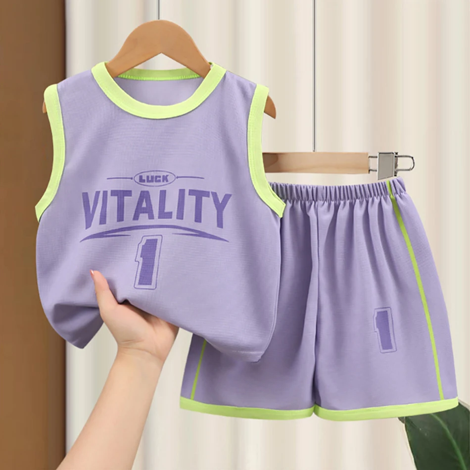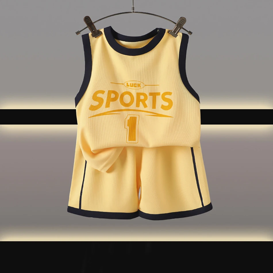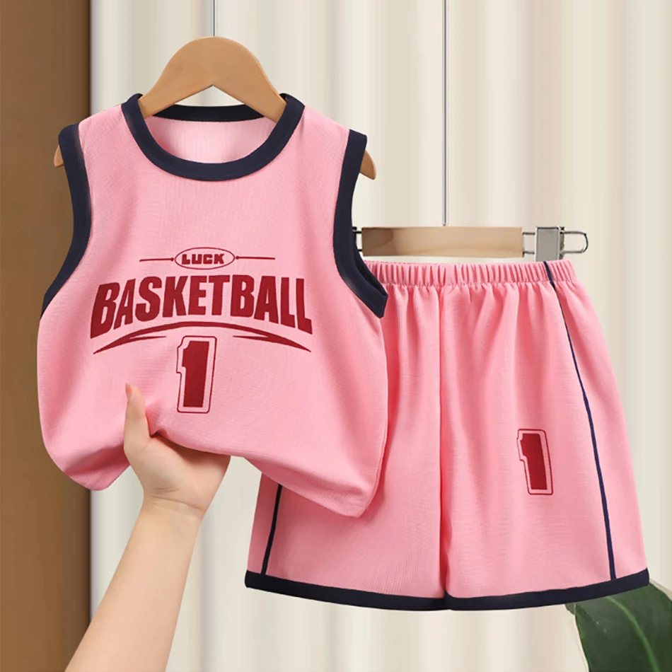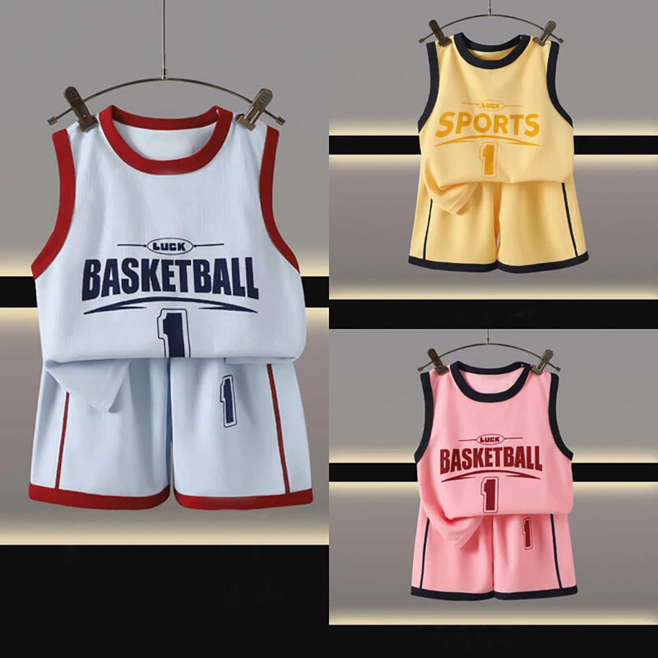 2Pcs 2025 Summer New Kids Tops Baby Korean Basketball Sets Boy Girl Sleeveless Vest Shorts Children’s Top And Bottom Clothes Set