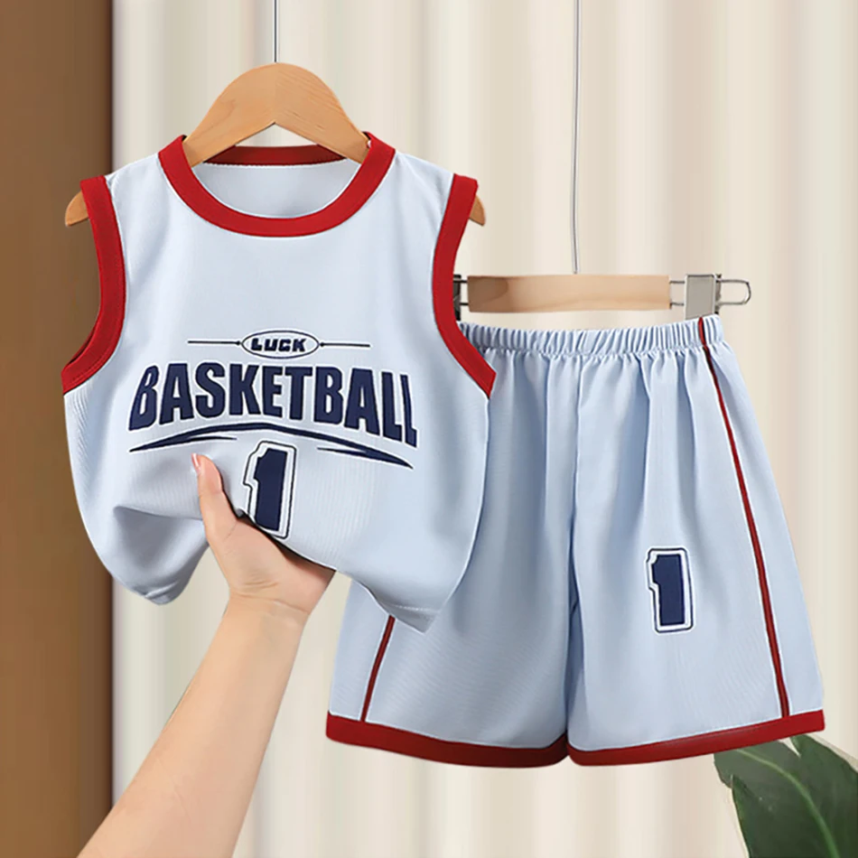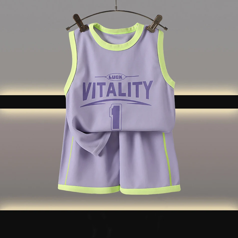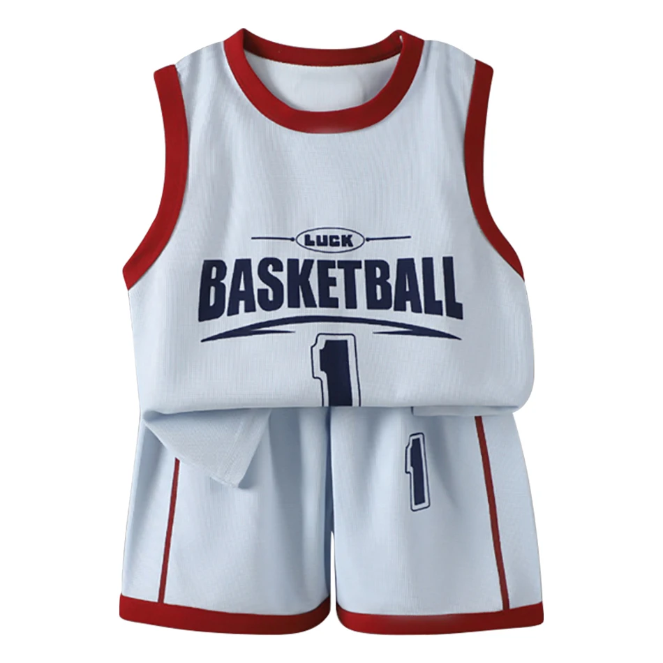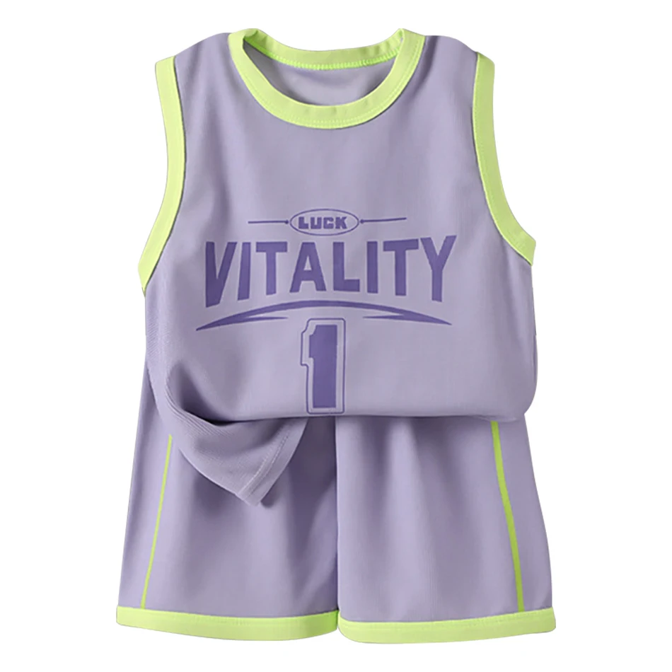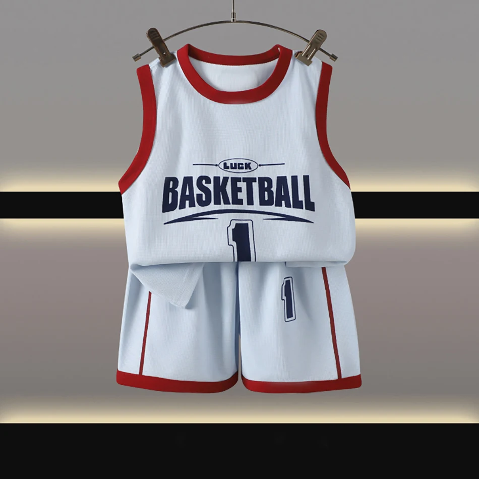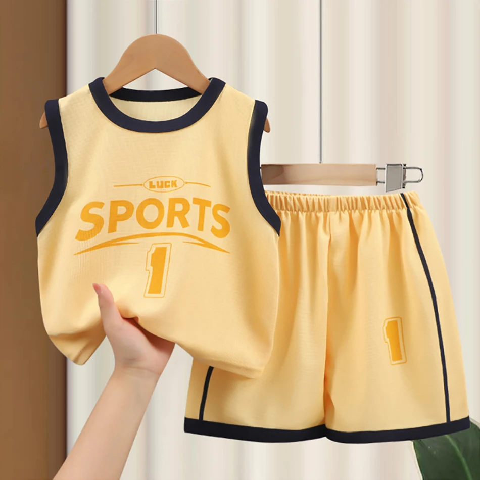2Pcs 2025 Summer New Kids Tops Baby Korean Basketball Sets Boy Girl Sleeveless Vest Shorts Children’s Top And Bottom Clothes Set