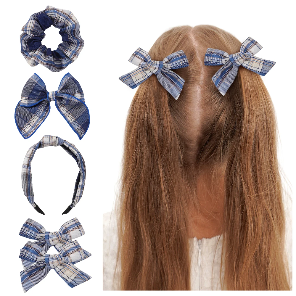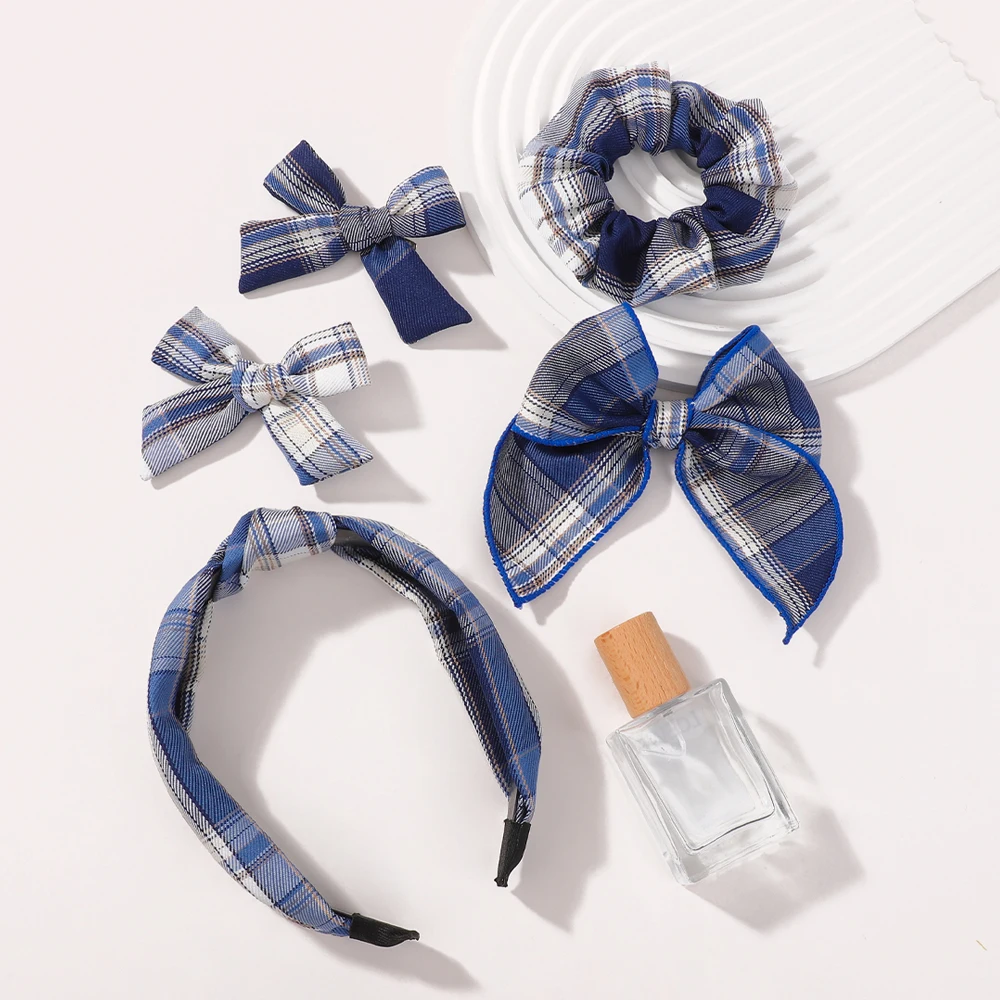 5pcs Baby Girls Christmas Stripe Bow Hair Accessories Set Vintage Wide Edge Hairband & Clips Winter Festive Hair Accessories