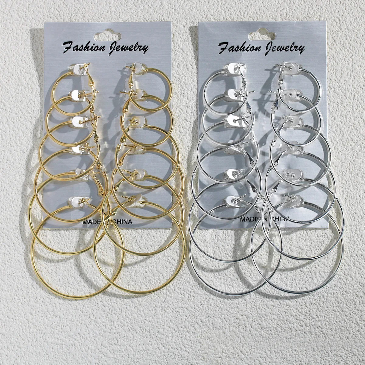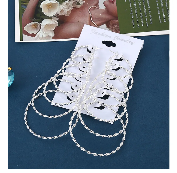 6 Pairs Hyperbole Big Gold Color Metal Hoop Earrings Set for Women Simple Round Circle Earring