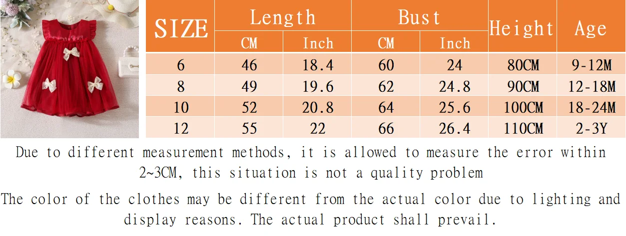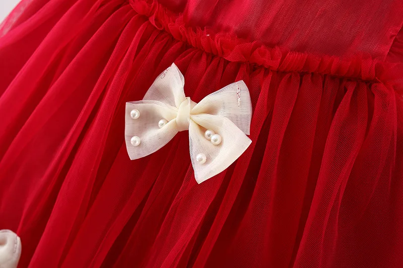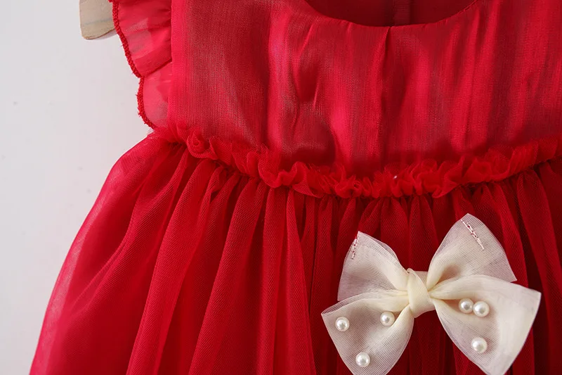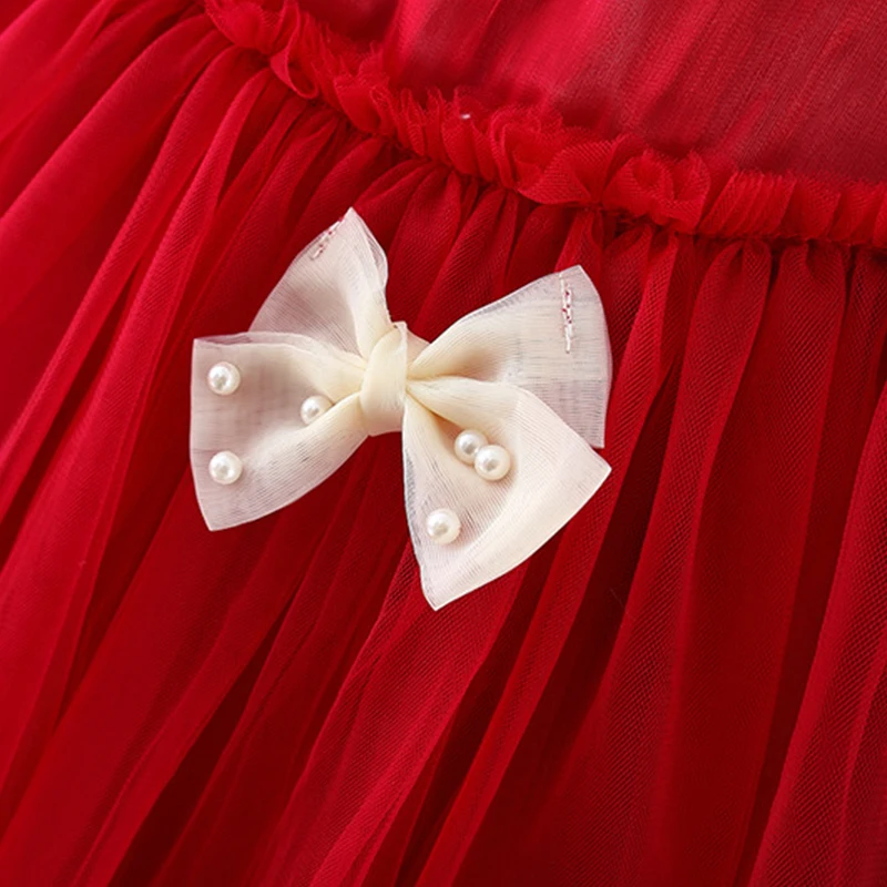 (9 Months -3 Years Old) Red Christmas Party Baby Girl Princess Dress, Summer New Sweet Bow Children’S Clothing