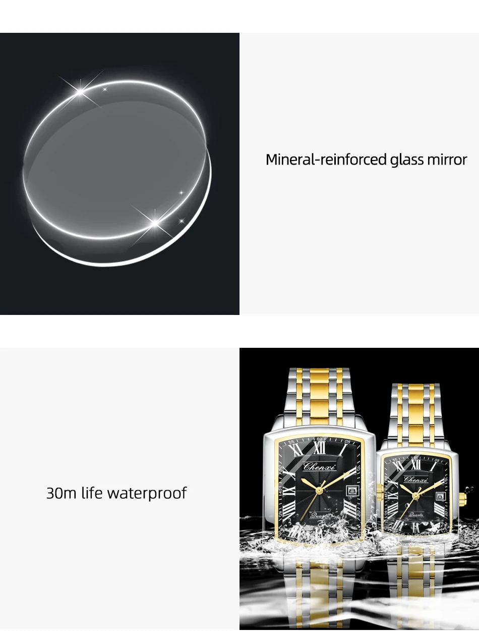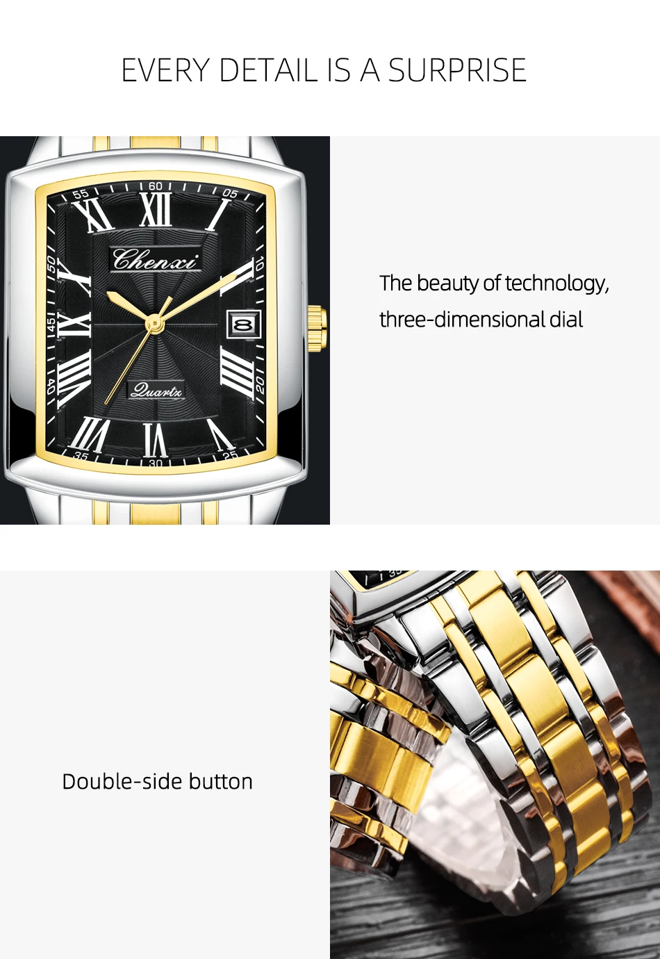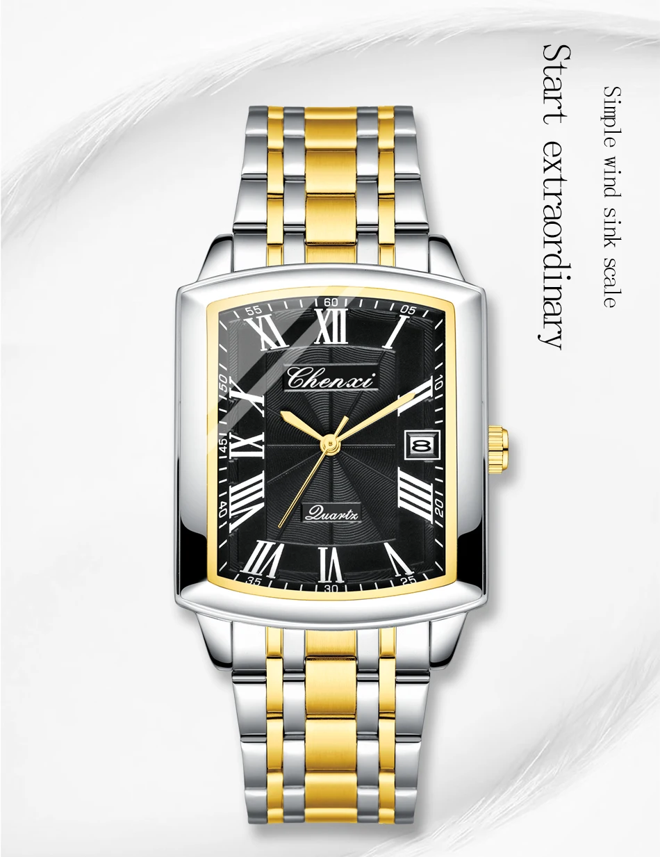 CHENXI Luxury Quartz Watch Classic Business Waterproof Square Dial Men’s Watch Women’s Watch Date Week Couple Watch