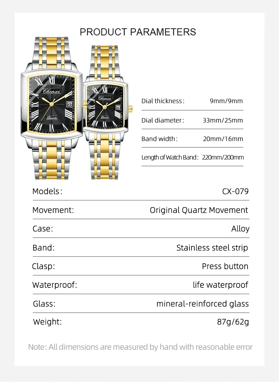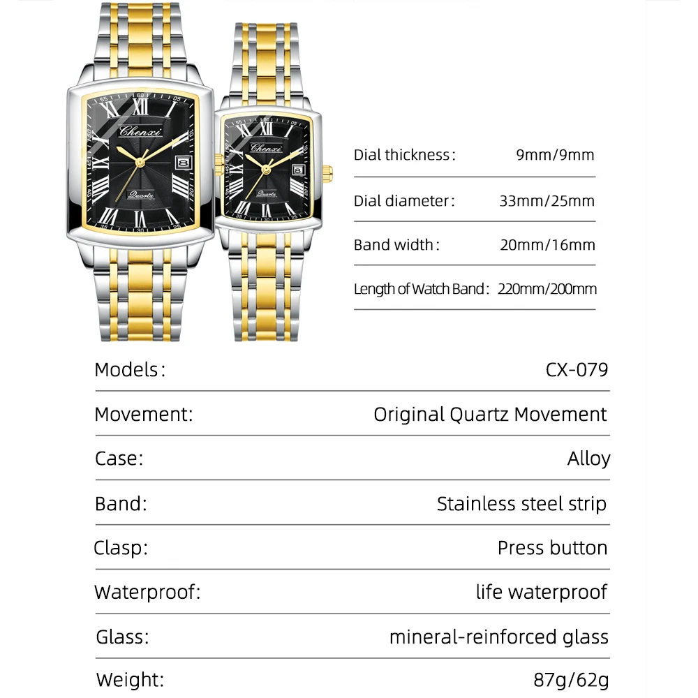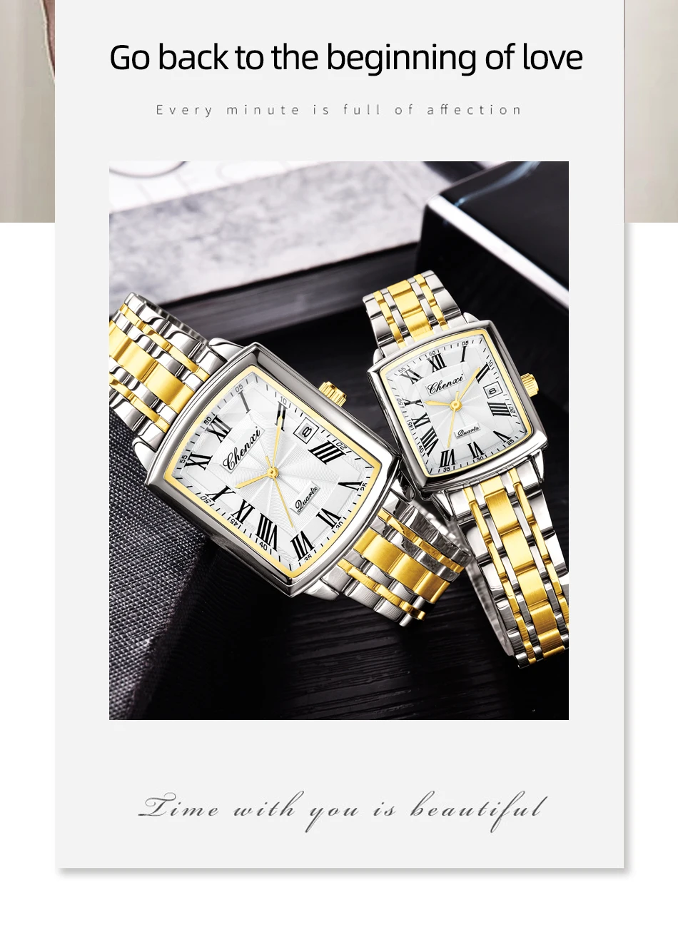 CHENXI Luxury Quartz Watch Classic Business Waterproof Square Dial Men’s Watch Women’s Watch Date Week Couple Watch