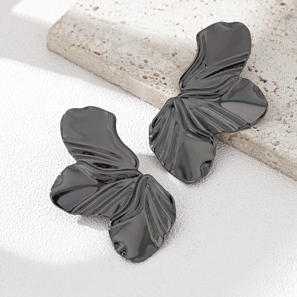 Stainless Steel Half Flower Stud Earrings for Women Girls Minimalist Irregular Petal Earring Studs Fashion Party Jewelry Gifts