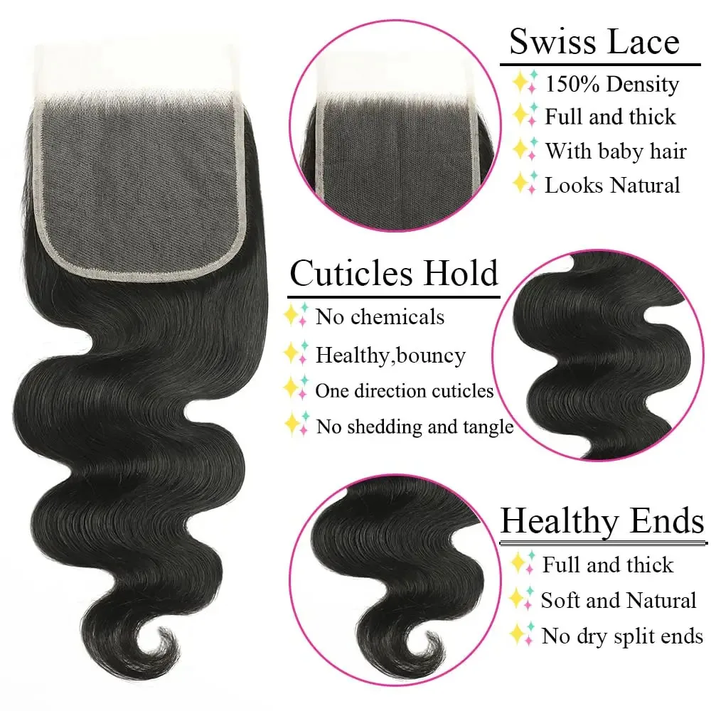 4×4 5×5 Body Wave Closure 6×6 Human Hair Lace Frontal Closure For Women Hair Extensions Swiss Lace Brazilian Human Hair