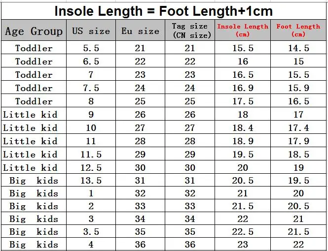 | Shoe Size | 24, 25, 22, 23, 21, 32, 33, 30, 31, 28, 29, 26, 27, 36, 34, 35 |