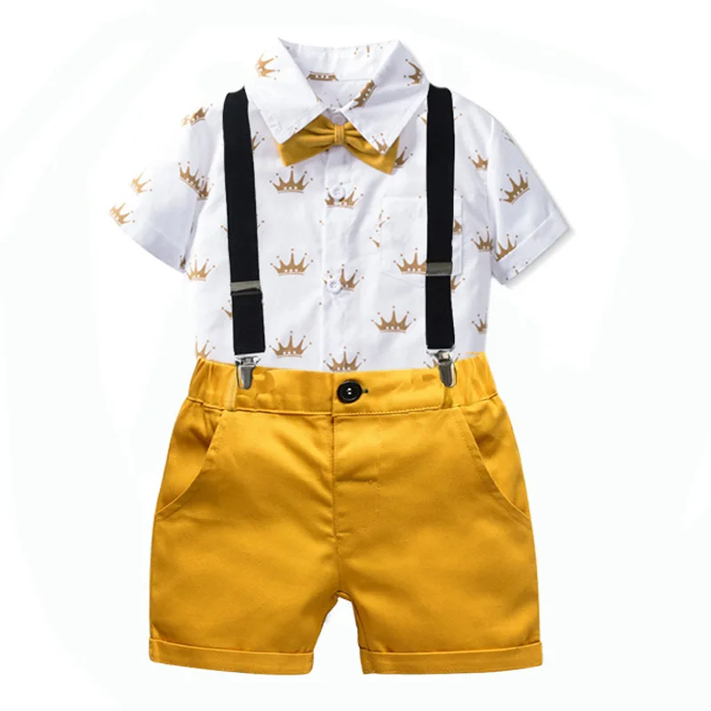Kids Boys Clothes Sets Gentleman Suit Short Sleeve Shirt Bowtie+Shoulder Strap+Shorts Pants Baby Children Formal School Outfits