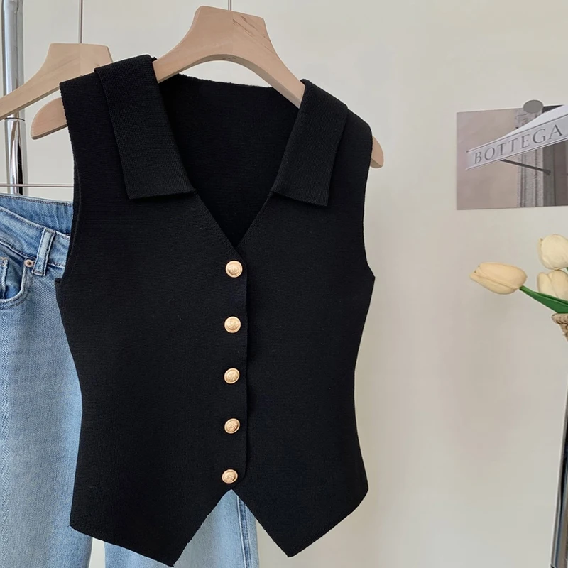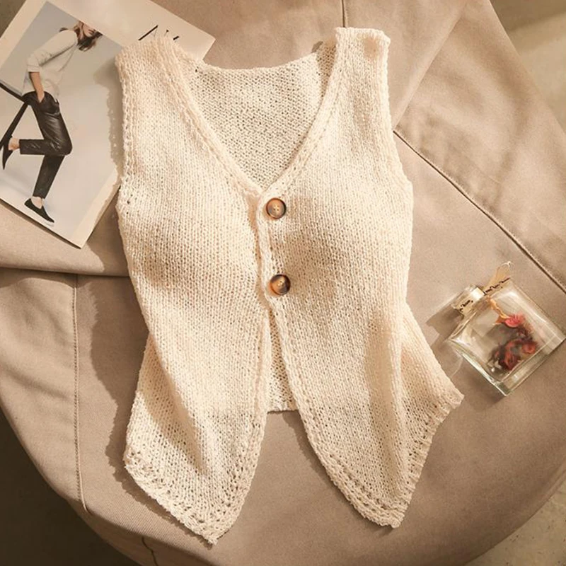 1pcs Vest French Temperament V-neck Single Breasted Sleeveless Slim Knitted Vest For Women