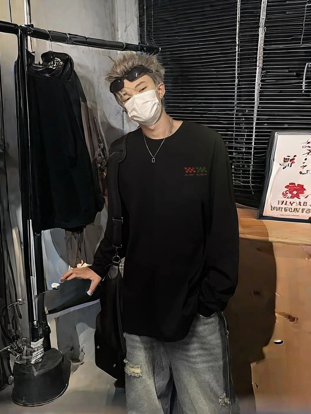 American Letter Print T-shirt Men Autumn 2025 New 100% Cotton Oversize Black Long sleeves Loose Casual Tee Y2k Top Man clothing