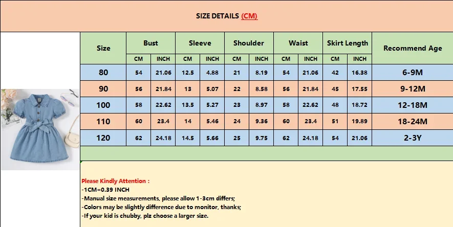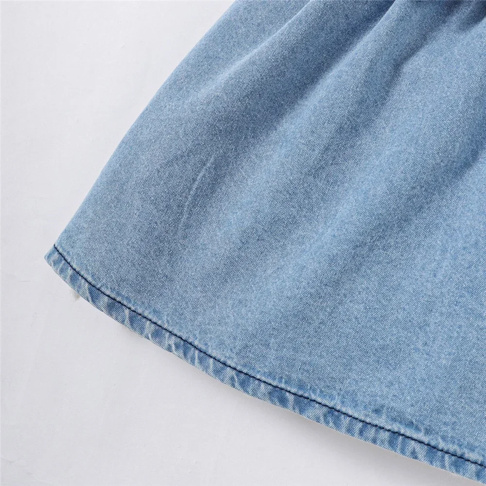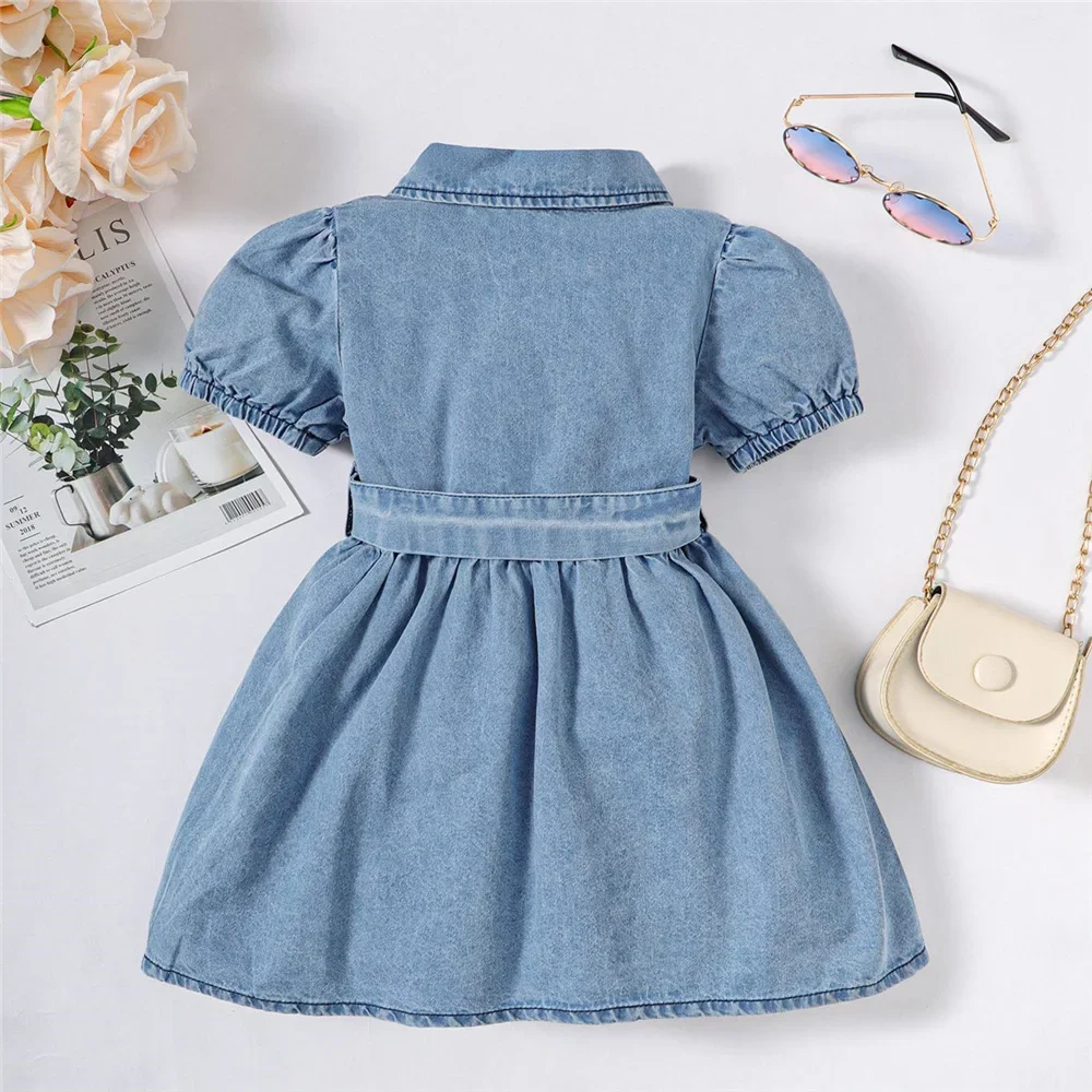 Baby Girl Fashion Dress Bubble Sleeve Lapel Jeans Casual Dress+Belt Summer Birthday Party Costumes for 1-3 Years Toddler Girl