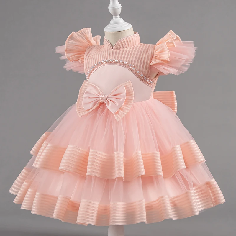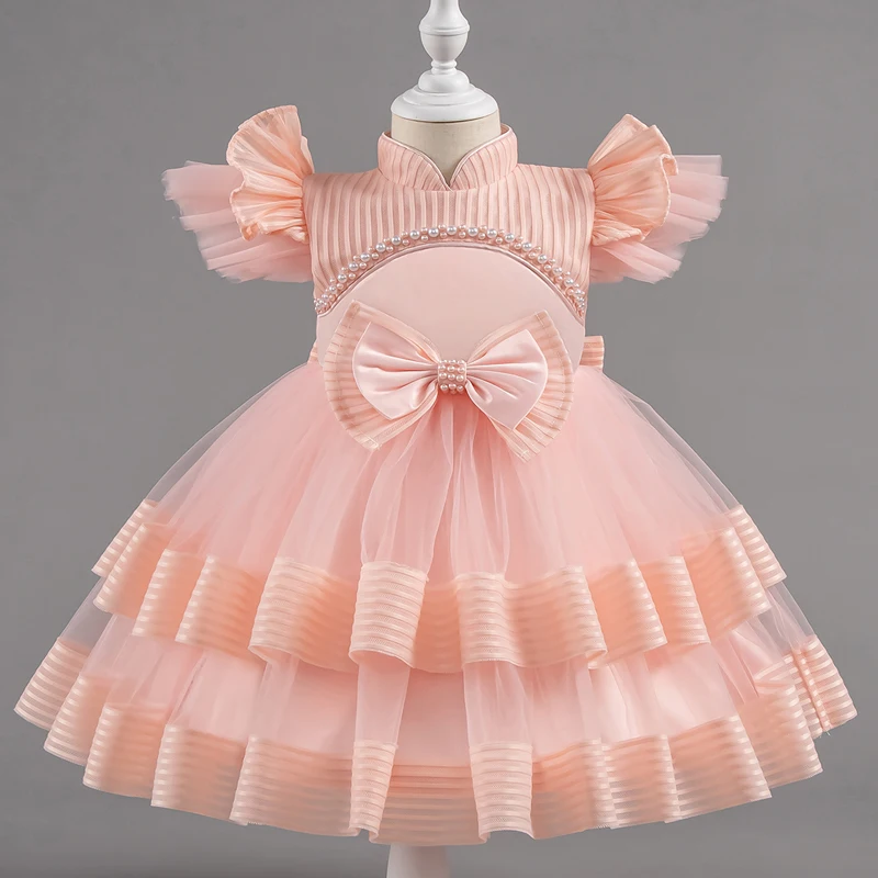 Baby Girl’s Short Dresses Fashionable Mesh Kids Princess Dress Birthday Ceremony Wedding Flower Girl Dress