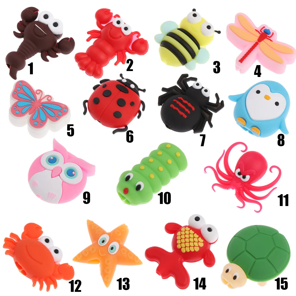 Cartoon Insect Shape Wire Cord Protector Silicone Case Data Line Cover Cute Animal Wired Earphone USB Charger Cable Protectors