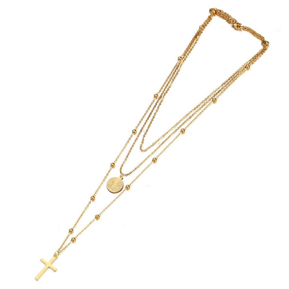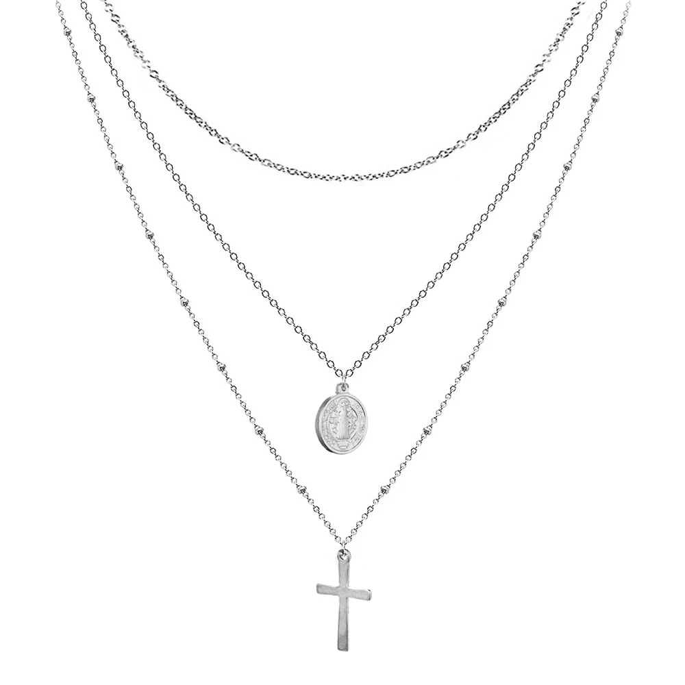 Catholic Church Jesus Necklaces Stainless Steel Multi Layered Cross Choker Necklace For Women New Religious Christian Jewelry