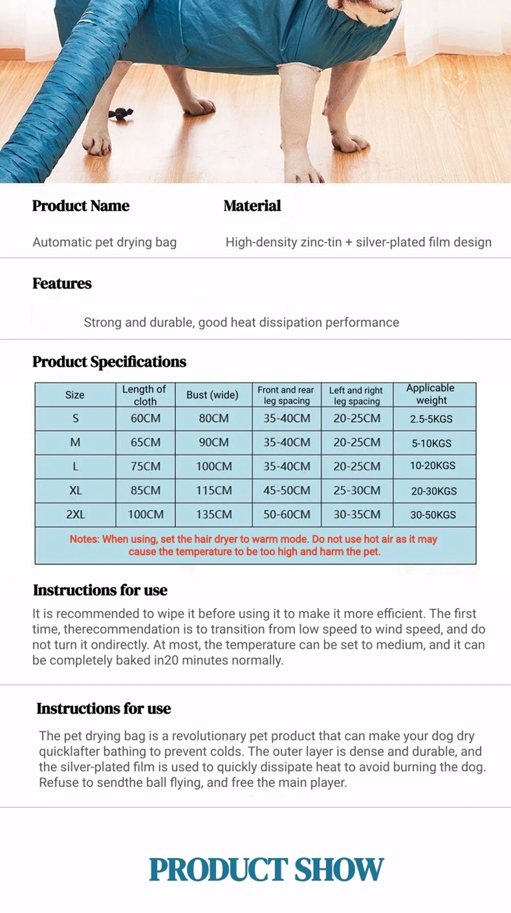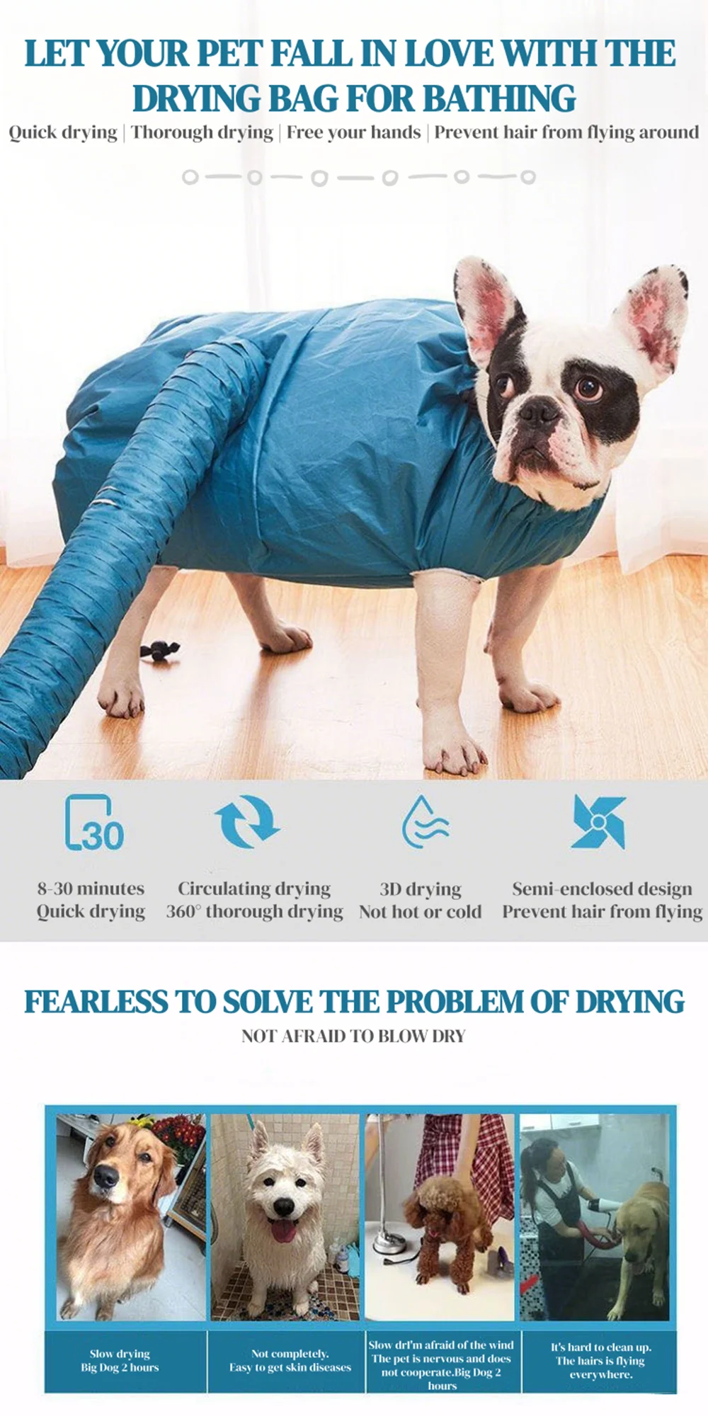 Dog Cat Pet Drying Bag Blow Dry Hair Dryer Machine Bath Quick Dry Drying Box for Fast Hair Drying Home Use